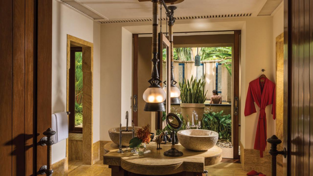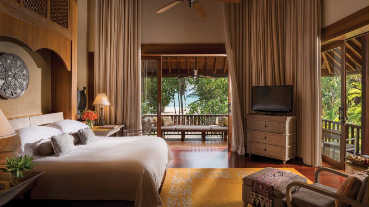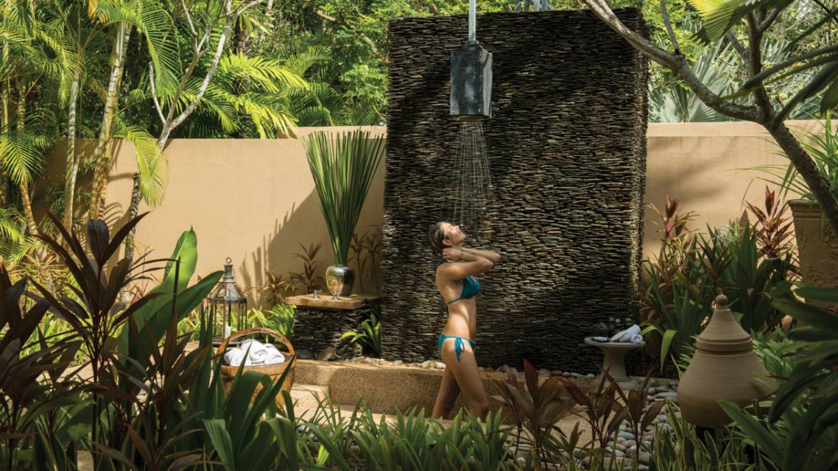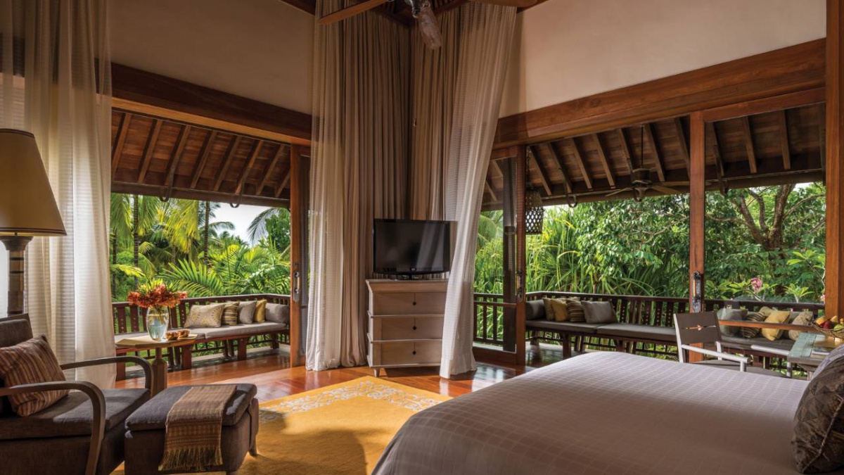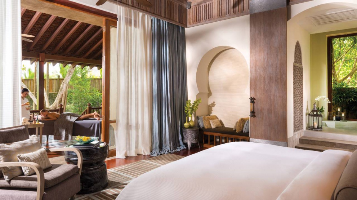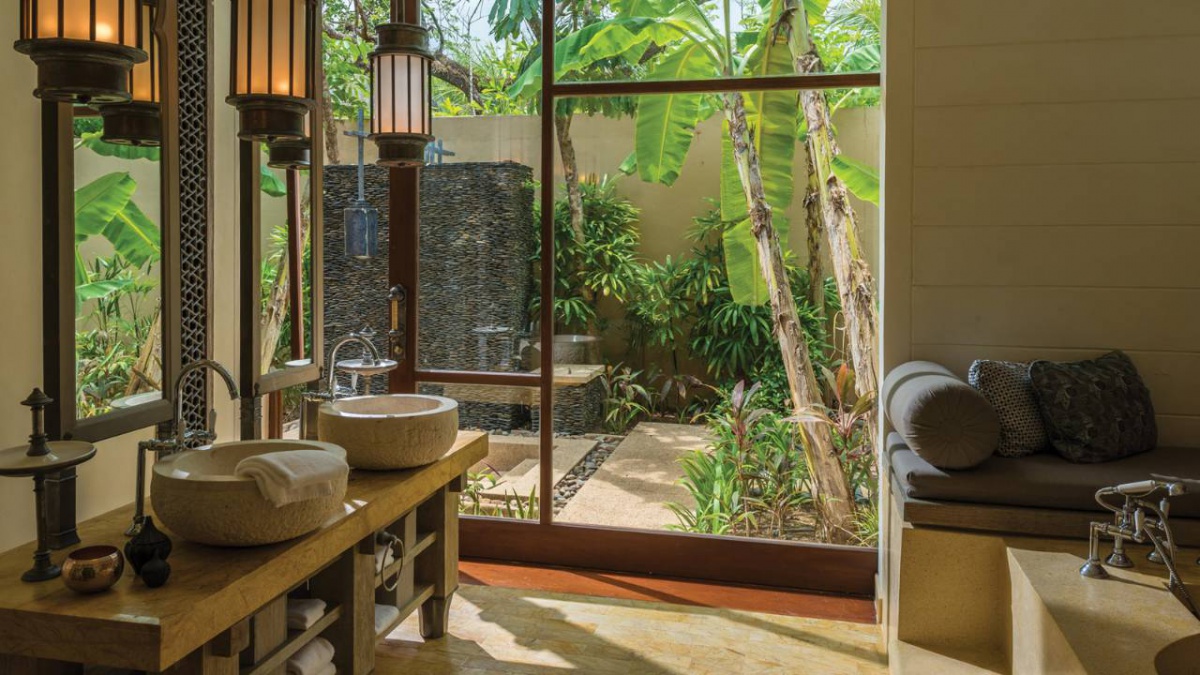 Beach Villa: — 220 м2. Расположены на пляже; с видом на море и пляж; состоят из спальни, гостиной, процедурного кабинета с двумя массажными столами, ванной комнаты с душевой кабиной и ванной, душ на открытом воздухе, патио с обеденным столом и садом с бассейном. Максимальное размещение — 2 взрослых + 4 ребенка.
