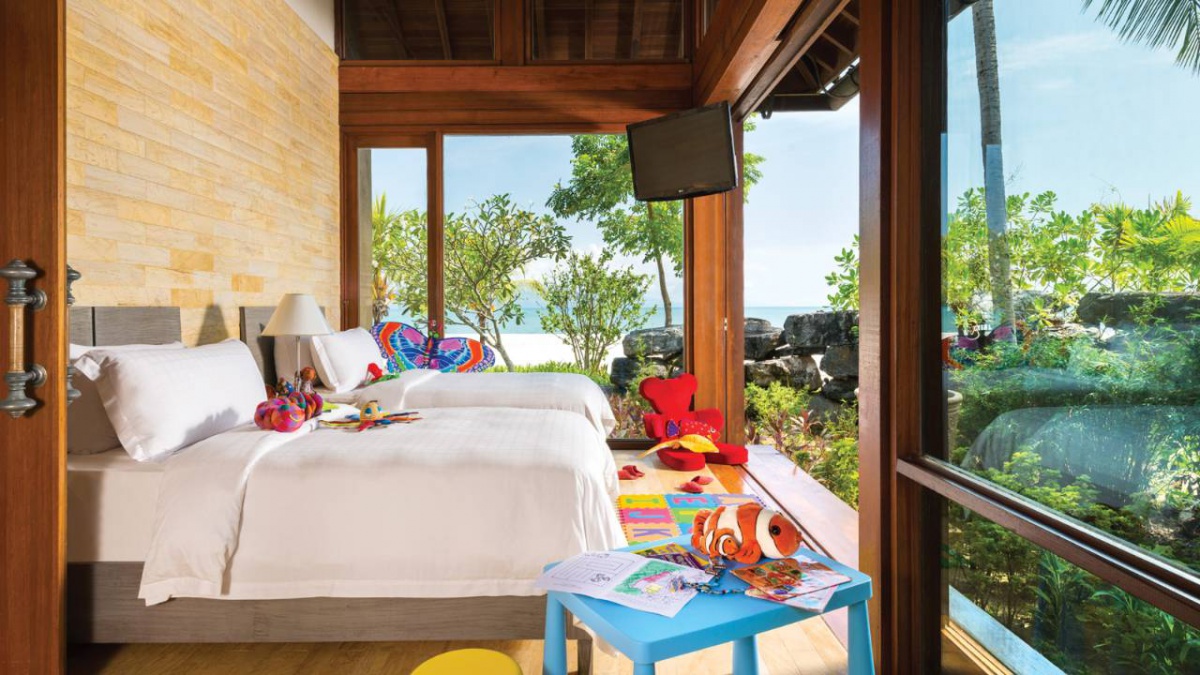 Family Beach House: 220 м2, вилла расположена на пляже. Включает две спальни (с кроватью king-size и двумя кроватями twin), просторную гостиную, гардеробную, ванную комнату, отделанную мрамором, душ на открытом воздухе, террасу с обеденной зоной и зоной отдыха, сад с бассейном.