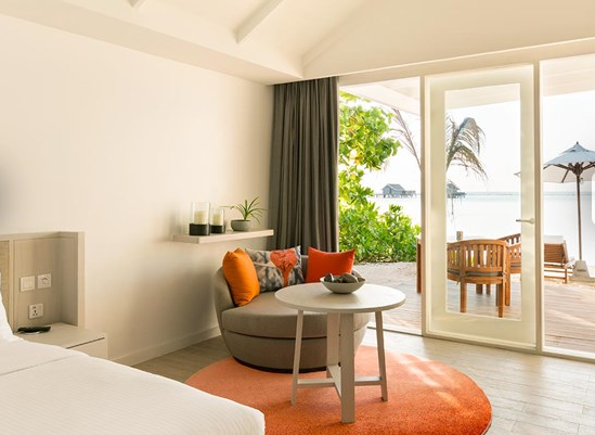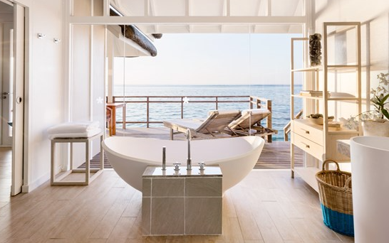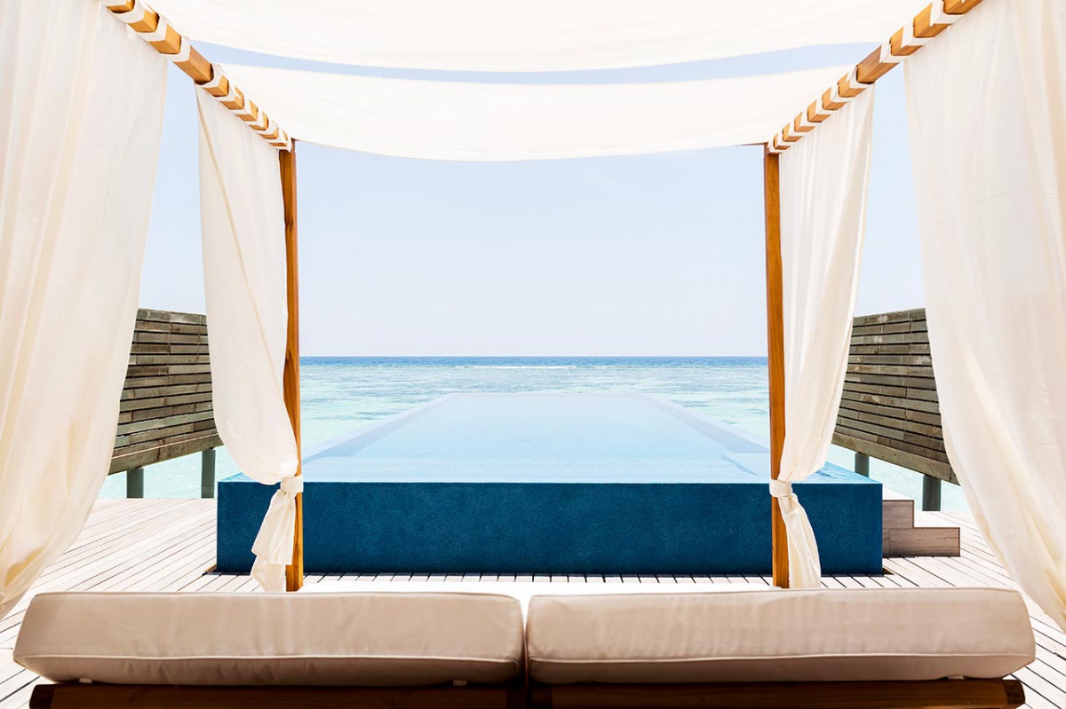 Water Treatment Villas - 4 роскошные двухместные процедурные комнаты, расположенные в воде на сваях. Все 4 комнаты имеют террасы, вдающиеся в лагуну, с душевыми на открытом воздухе и салонами. В каждой комнате есть также душевая и отдельный туалет. Особенностью этих комнат является то, что Вы можете во время процедур наблюдать за богатым подводным миром через стеклянный настил.