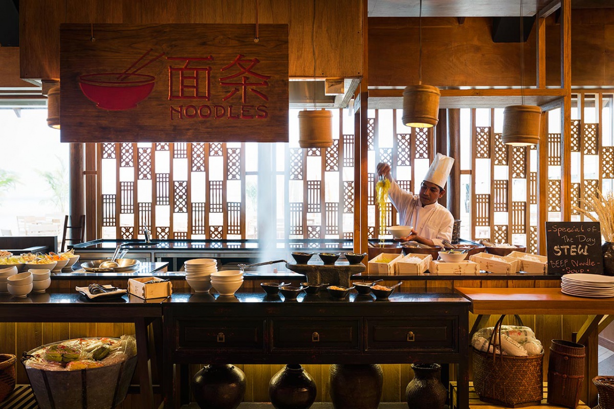 EAST Asian Restaurant & Bar - основной ресторан комплекса с чудесным видом на лагуну, расположенный на сваях в воде – приглашает на завтрак, обед и ужин и предлагает большой выбор блюд комбоджийской, индонезийской, тайской, гонконгской, шри-ланкийской кухонь, а также буфет в китайском стиле.