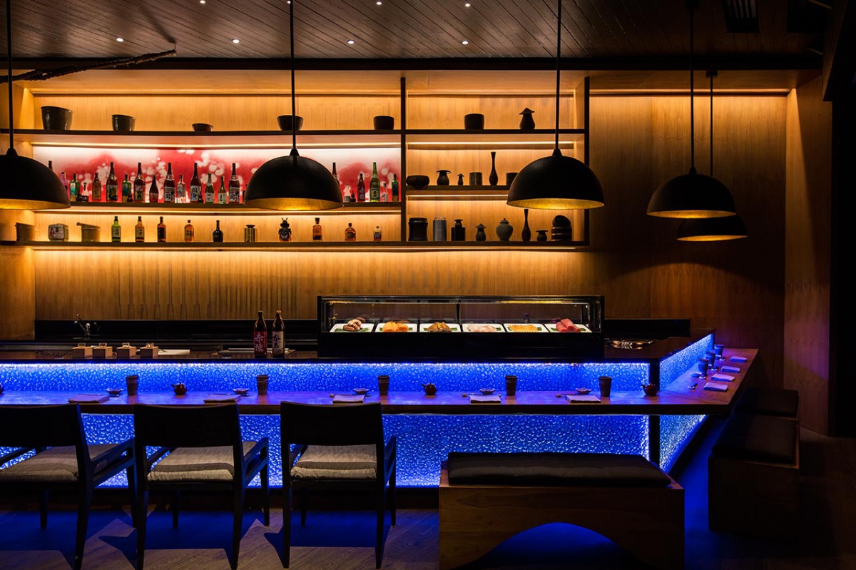 PURE Japanese Fusion Restaurant - типичный японский ресторан с открытой кухней, расположенный на сваях в воде, предлагает пикантные блюда японской кухни, приготовленные на Ваших глазах. Имеется суши-бар и стол Tepaniaki. Ресторан открыт только на ужин, требуется предварительная резервация.