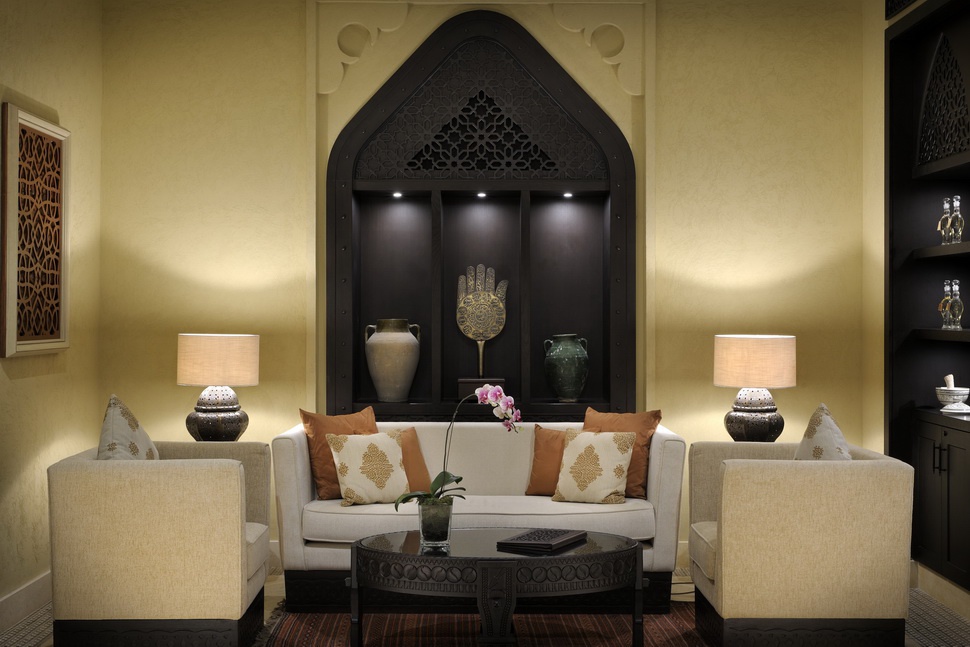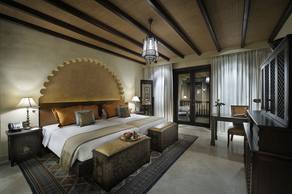 Основное здание отеля выполнено в светло-песочных оттенках с прямыми галереями, которые украшены резными башнями. Виллы выполнены в классическом арабском стиле, имеют просторные террасы и гармонично сливаются с окружающей природой.