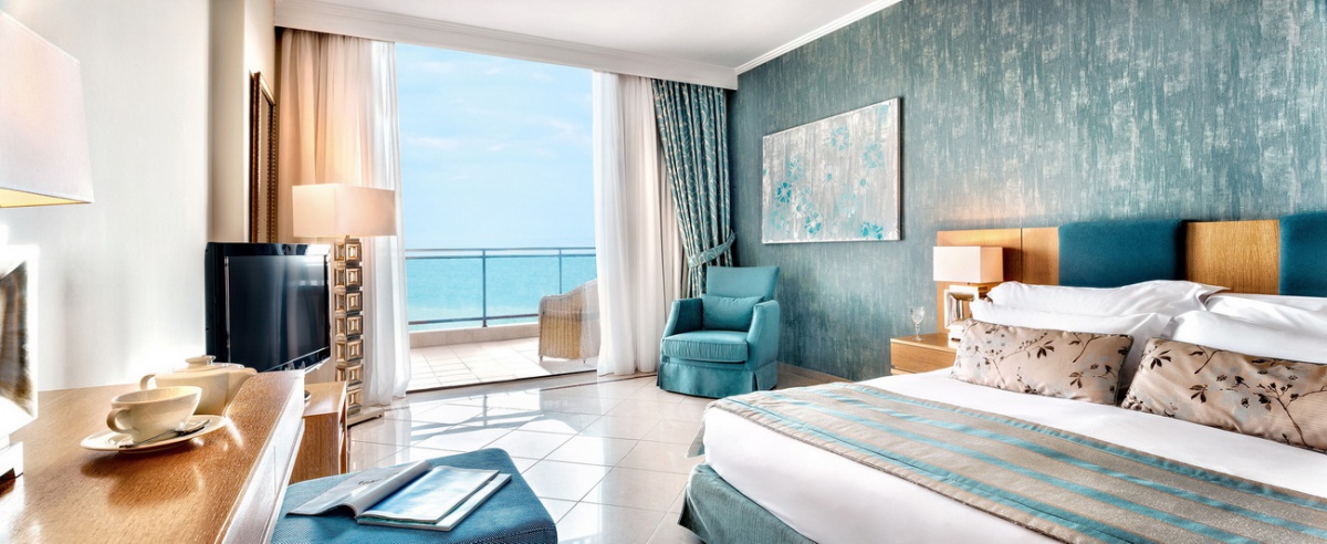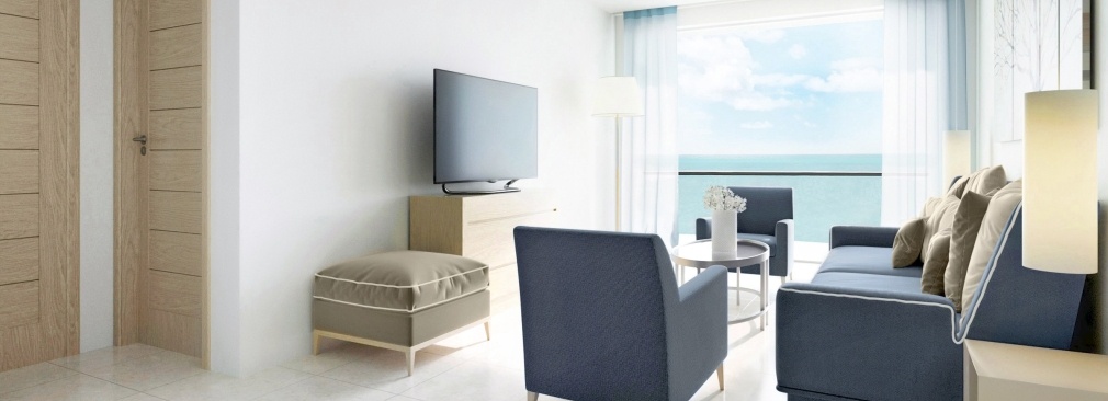55 м2. Превосходно декорированный роскошный люкс включает в себя просторную гостиную и отдельную элегантную спальню, для комфортного проживания двух взрослых и двух детей. В номере имеется большая ванная комната с душем и ванной, а также полностью меблированный балкон или терраса с чудесным видом на море.