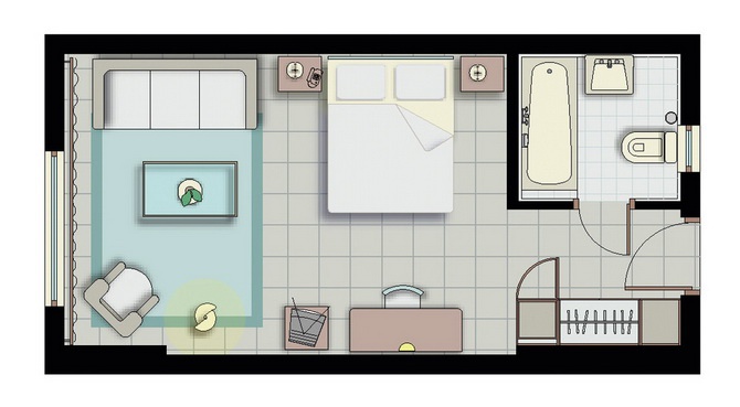 48 м2. Современный полулюкс со стильной гостиной и отдельной спальней, для комфортного проживания двух взрослых и двух детей. Ванная комната оснащена ванной и душем, а с лежаков на широкой меблированной террасе открывается потрясающий вид на море.