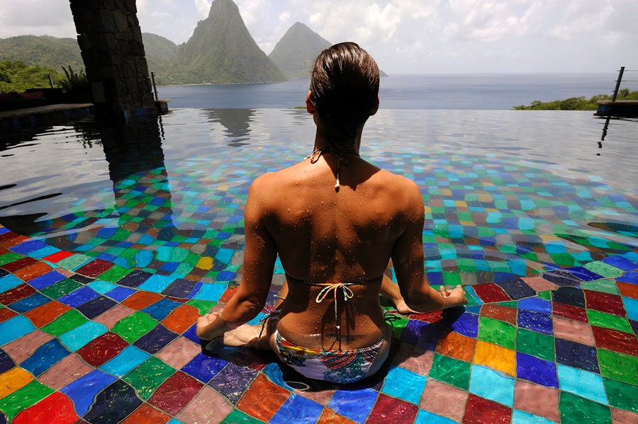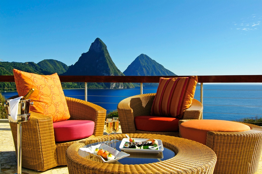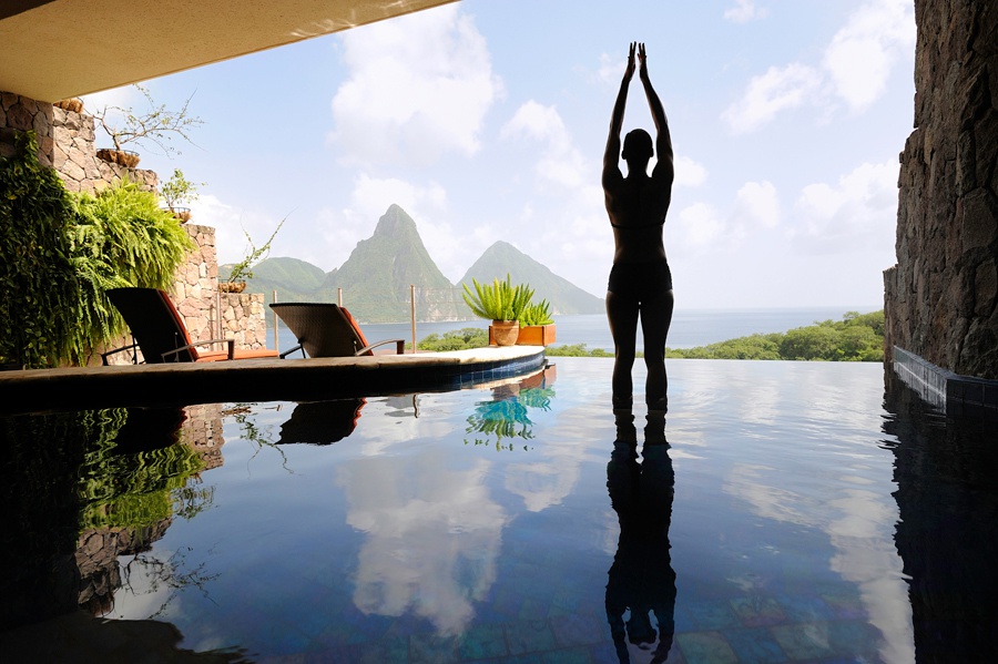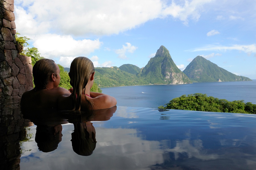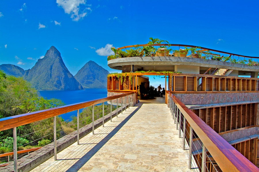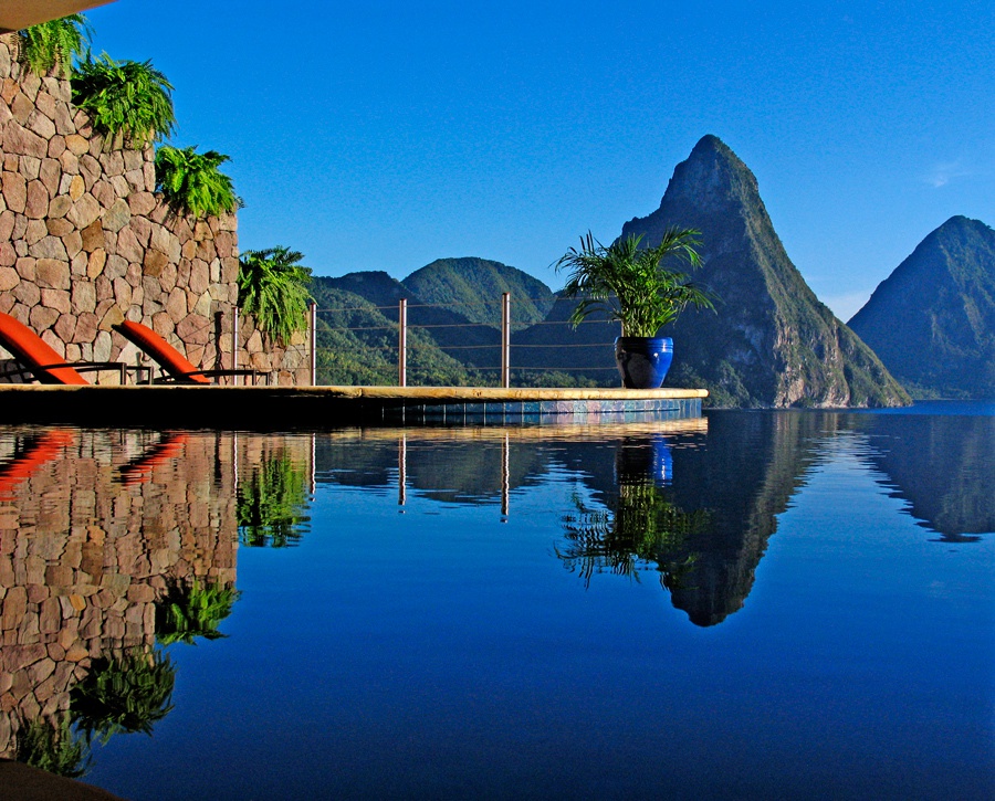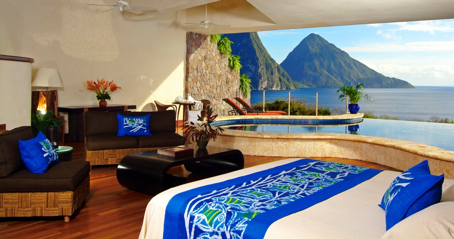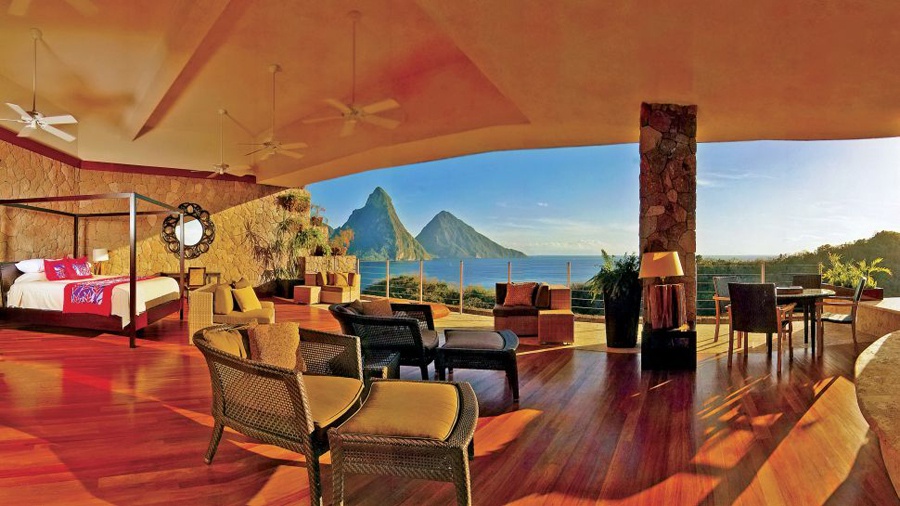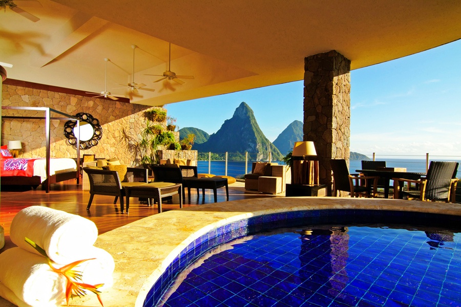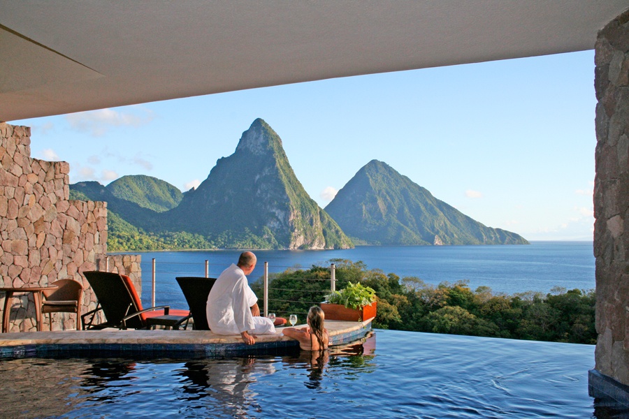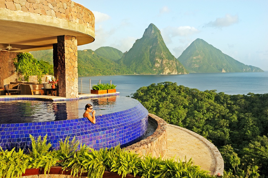 На склоне высокого зеленого холма, протянувшегося прямо к сверкающим водам Карибского моря, разместился отель Jade Mountain Сент-Люсия, который идеально сливается с  великолепными ландшафтами побережья и представляет уникальную концепцию архитектурной и природной гармонии. Дизайн шикарных номеров подчеркивает красоту и величие охраняемого ЮНЕСКО тропического уголка. В номерах нет одной стены, что позволяет слиться с чарующей морской панорамой и величественным вулканом Питон. Ощущение единения дарит сказочная экзотическая природа, которой можно наслаждаться, купаясь в лазурном бассейне, который есть в каждом номере. Особую атмосферу спокойствия создает отсутствие телефонов, радио и телевизоров. Гости наслаждаются только волшебством природы и полным расслаблением, чему способствуют различные услуги в СПА-центре, фитнес, йога и превосходная кухня в ресторане, из которого открывается потрясающий вид на море. Здесь под звездами вас ждут незабываемые вечера в Сент-Люсия, ведь Jade Mountain Сент-Люсия — это эксклюзивный отдых.