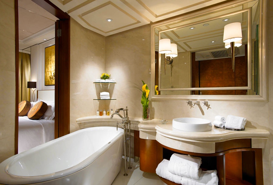 Grand Langham Room: 33 м2; состоит из спальни с кроватью king size или двумя кроватями twin, ванной комнаты открытой формы с раздвижными дверями.