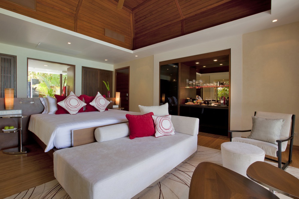 255 кв.м. Номер-люкс с бассейном со спальней, ванной под открытым небом с душами внутри и снаружи, гостиной с диваном и гостевой ванной комнатой, собственным бассейном «семейного типа», выходом на пляж, индивидуальной террасой с креслом-качалкой, шезлонгами, и обеденным столом, ЖК-телевизором, холодильником с напитками и закусками. Специальный приветственный подарок и вечерняя подготовка номера ко сну для детей.