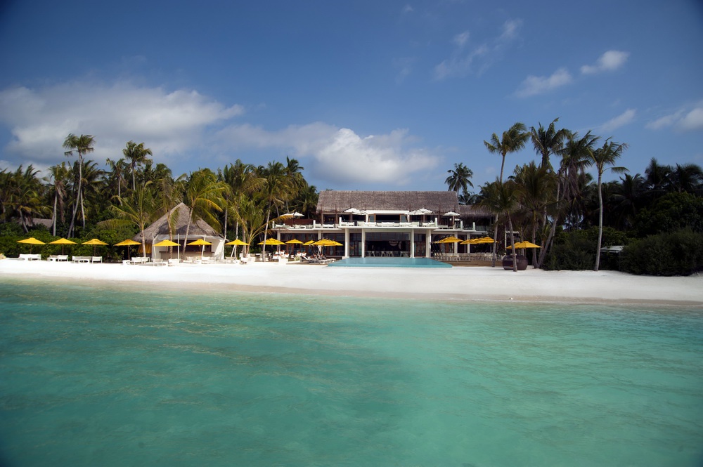 400 м². Павильон на берегу с бассейном для двух взрослых со спальней, джакузи под открытым небом, собственной террасой с шезлонгами, кушеткой и обеденным столом, ступенями, ведущими с индивидуальной террасы прямо в лагуну, гостиной и обеденной зоной, ванной под открытым небом с ливневыми душами внутри и снаружи, расположенными внутри и частично снаружи, ЖК-телевизором, кладовой дворецкого с дополнительным холодильником, льодогенератором, хьюмидором с сигарами, микроволновой печью и холодильником для вина, буфетом, заполненным напитками и закусками, коллекцией настольных игр и книг. Выход на пляж. Доступен массаж ног по прибытии и ежедневная доставка свежих кокосов и сумки-холодильника с прохладными полотенцами для лица.