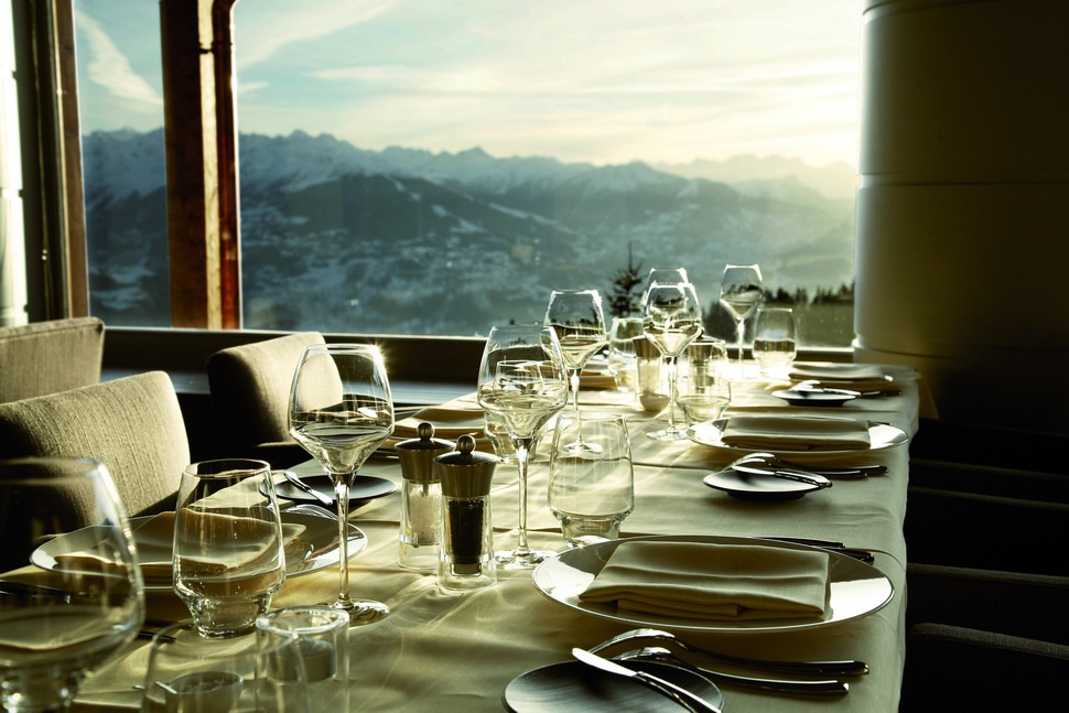 Ресторан отеля порадует гурманов отменной кухней и захватывающими видами на изумительные ландшафты Кранс-Монтаны. Ещё одна гордость отеля — винный погреб, где хранится богатая коллекция местных и импортных вин. Также к услугам гостей — ночной клуб, сигарный салон и бар-винотека.