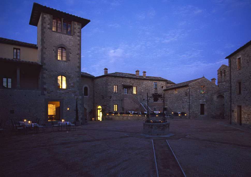 Отель Castel Monastero находится средневековой итальянской деревушке в самом сердце Тосканы недалеко от Сиены в 100 км от международного аэропорта Флоренции и 170 км от международного аэропорта Пизы.
