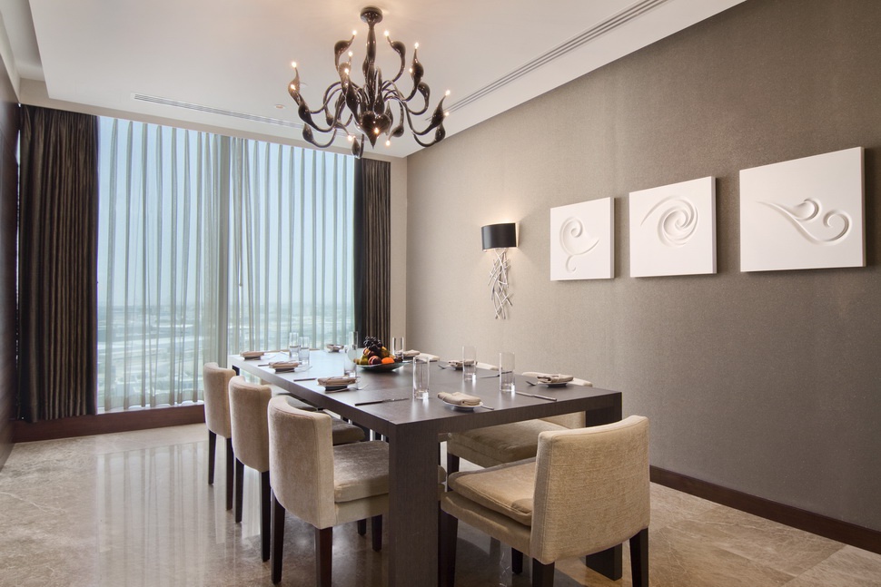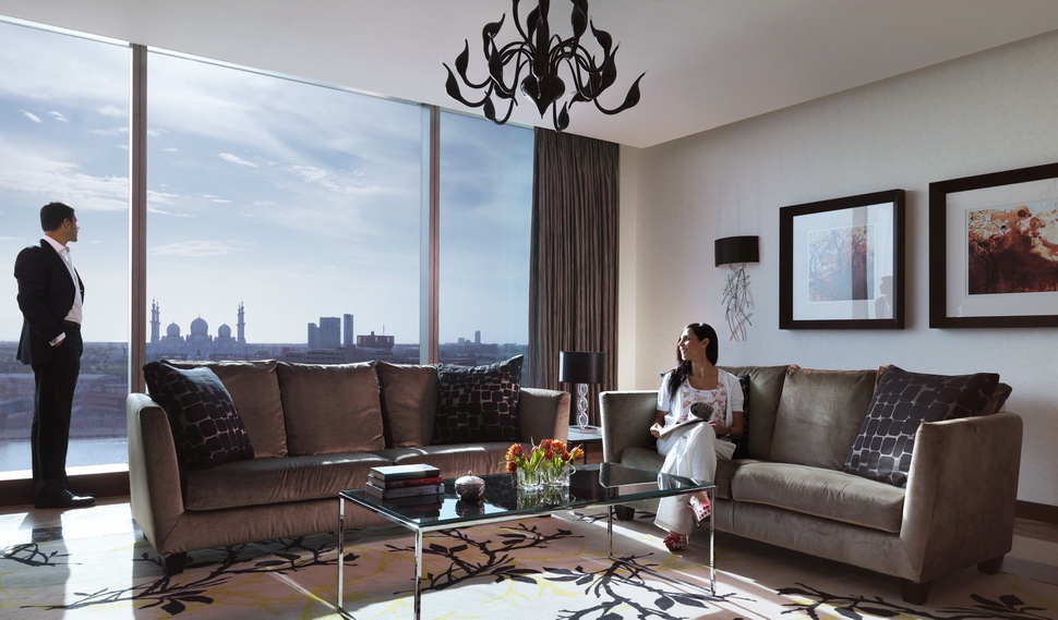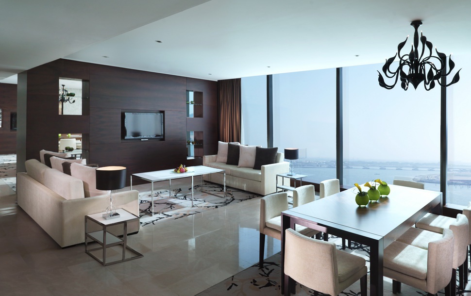 Presidential suite: 215 кв.м. Гостиная, 2 спальни (каждая с кроватью king-size), 2 ванные комнаты. Панорамный вид на пролив Abu Dhabi Creek и мечеть Sheikh Zayed Grand Mosque. Гости данного номера имеют особые привилегии.