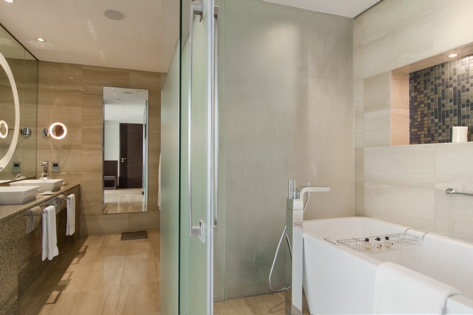 One-bedroom suite: 93 кв.м. Гостиная, спальня с кроватью king-size, ванная комната с ванной и отдельной душевой кабиной с функцией «тропический дождь».