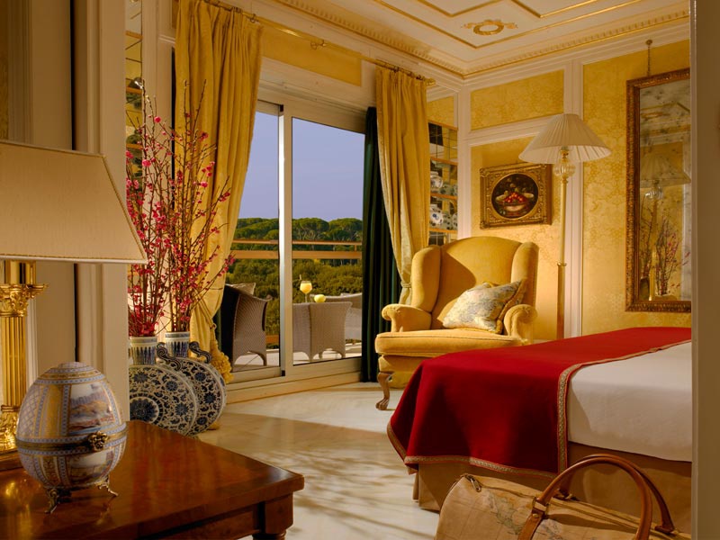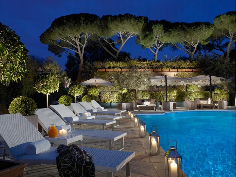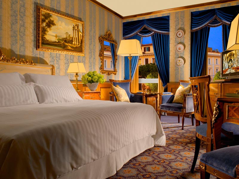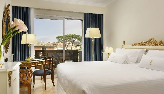 В отеле 179 номеров различных категорий, включая 155 Rooms и 24 Suites. Роскошное убранство номеров воссоздает атмосферу римских патрицианских вилл. Большинство номеров располагают балконами и террасами с потрясающим видом на Рим, парк Боргезе и фешенебельный район Париоли.
