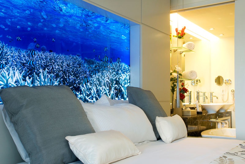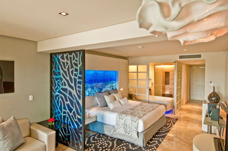 One Bedroom Master Suite Swim-Up: прибл. 83 м2. Состоит из спальни с кроватью king-size, гостиной с диван-кроватью, мини-кухни с обеденной зоной, ванной комнаты с гидромассажной ванной и «тропическим» душем, террасы (прибл. 23 м2) с джакузи и выходом к бассейну.