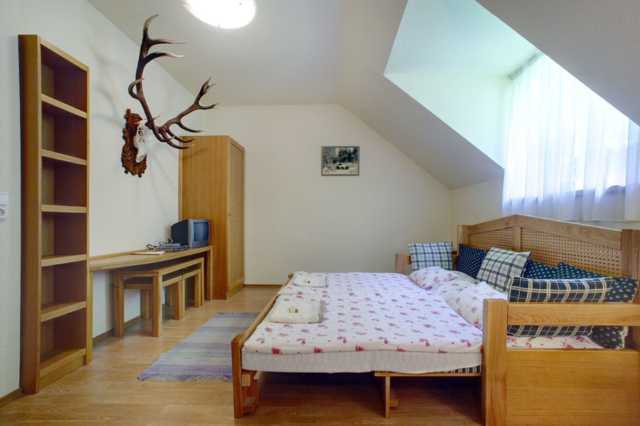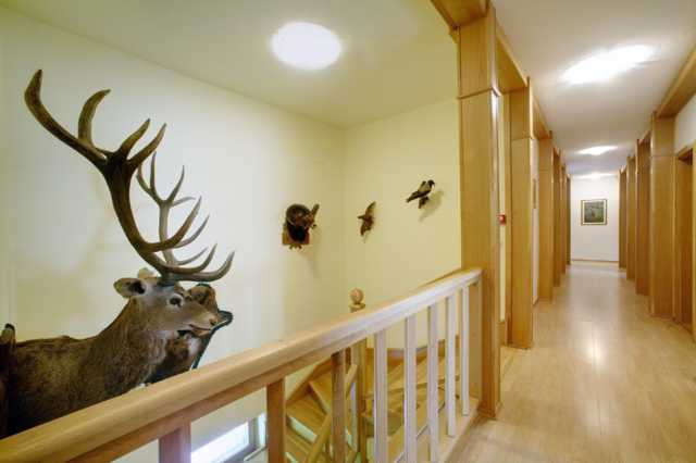 Охотничий дом входит во II-ую категорию; в доме имеется столовая, гостиная, 6 двухместных комнат и 2 трёхместных. Всего могут разместиться 18 гостей.