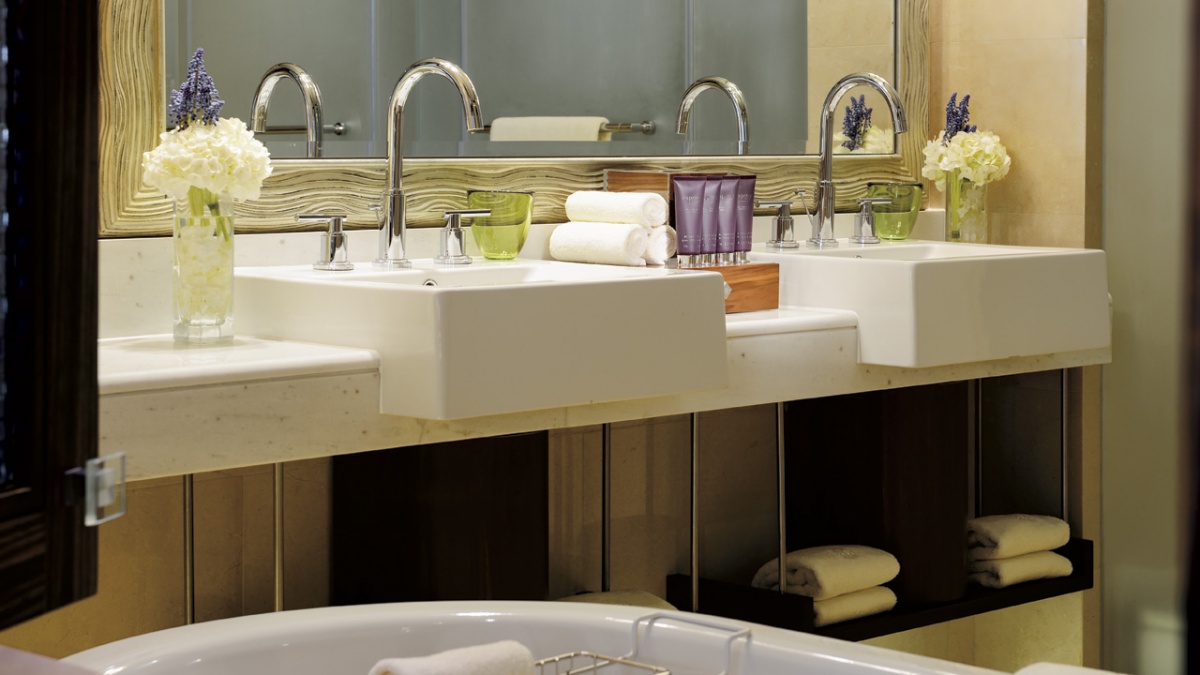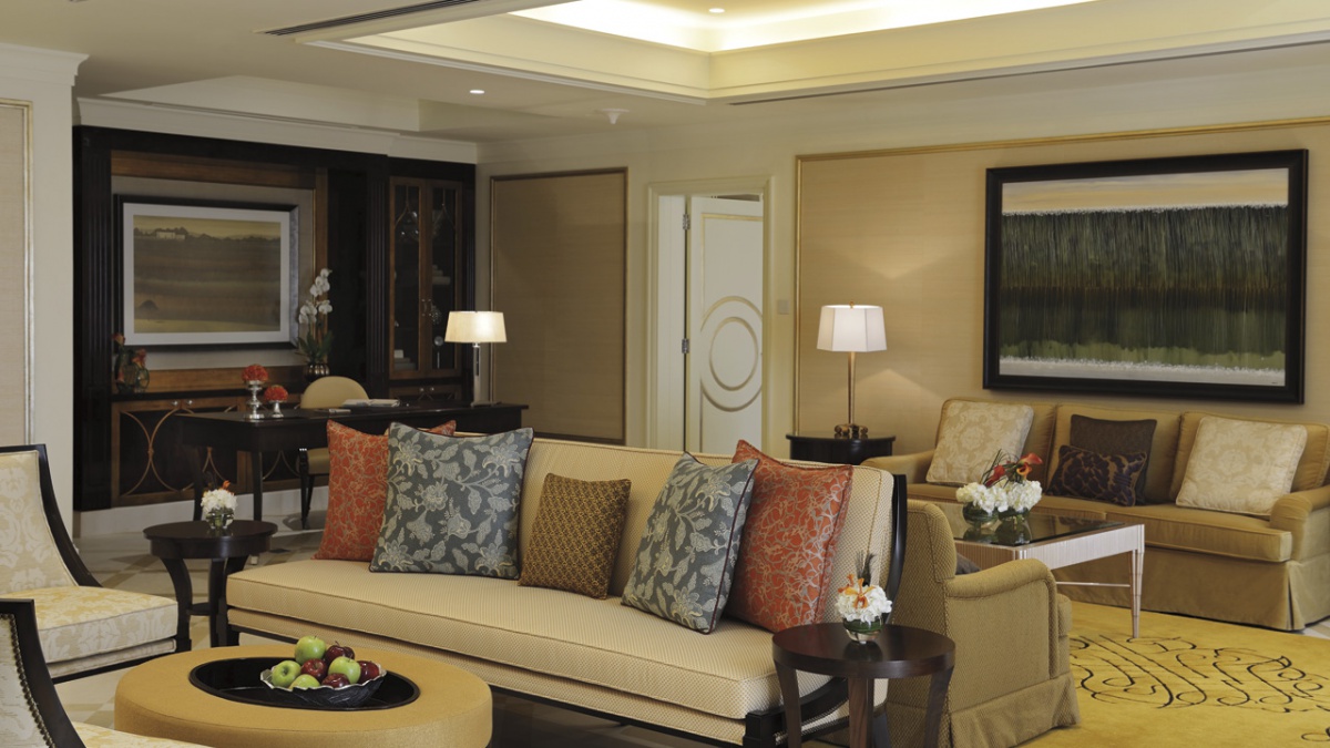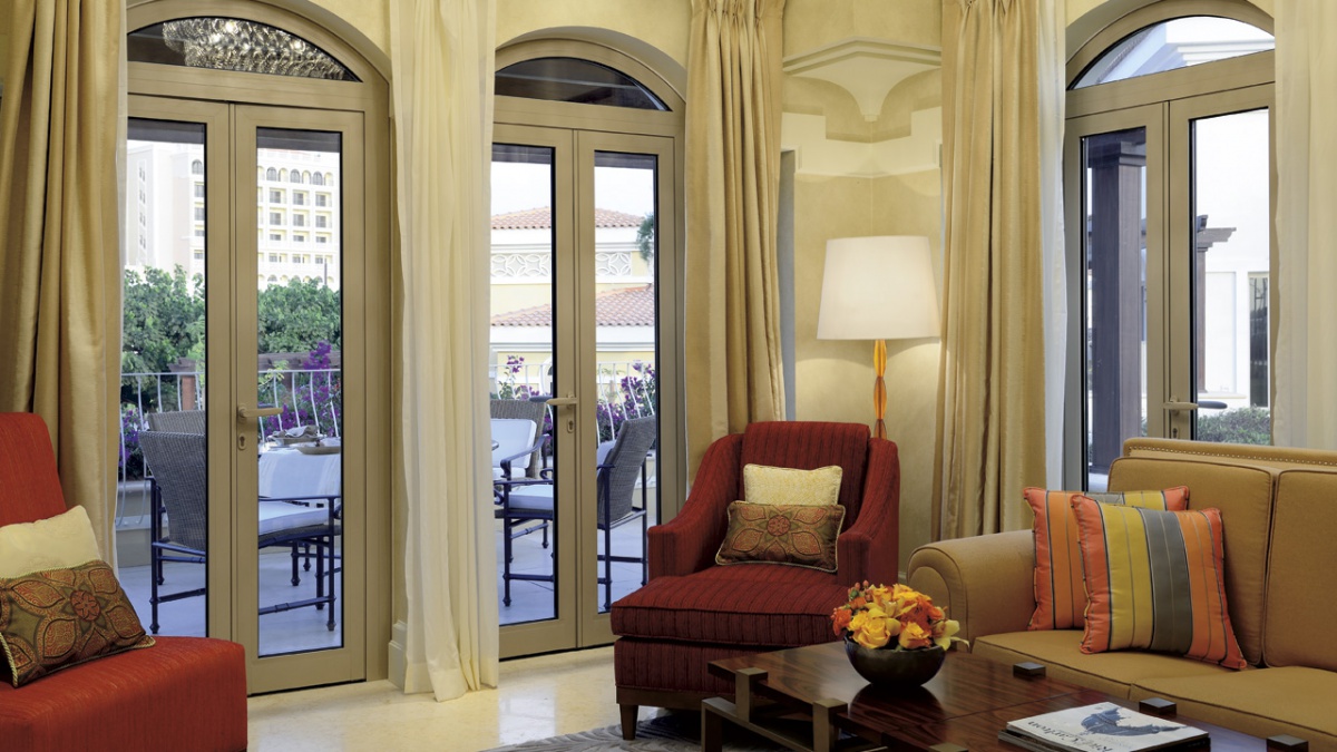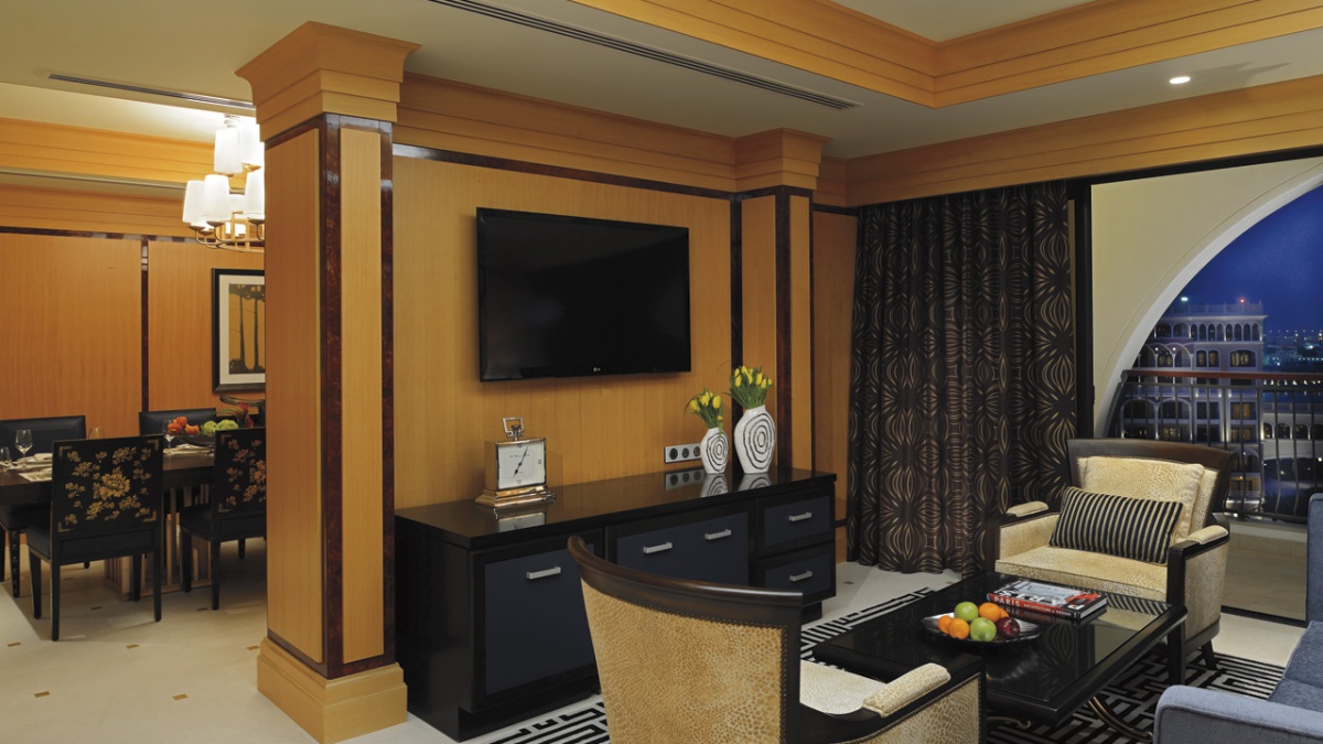 Ritz Carlton Suite: 126 м2. Фешенебельный номер расположен в главном здании, включает гостиную с обеденной зоной, небольшую кухню, спальню с кроватью king-size, ванную комнату, два балкона с чудесным видом на Гранд канал и бассейн. Гостям номера предоставляются привилегии Ritz Club и услуги дворецкого.