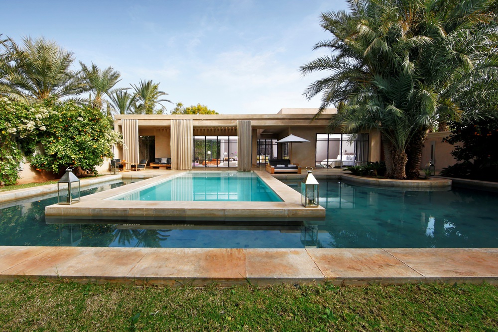 Water Palace: 460 м2. Роскошный двухэтажный дворец в восточном стиле, увенчанный золоченым куполом; включает 2 спальни с кроватями king-size, ванными комнатами и гардеробными, просторную гостиную с камином и обеденной зоной, кухню, террас с видом на Атласские горы, пышный сад (2000 м2) с большим подогреваемым бассейном. Гостям предоставляются круглосуточные услуги персонального дворецкого.