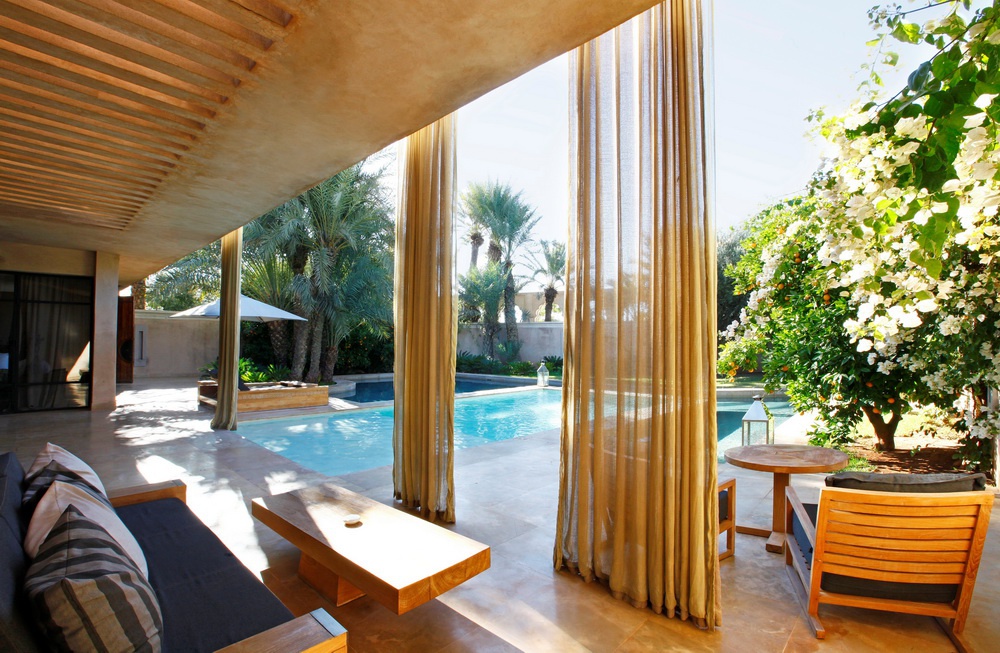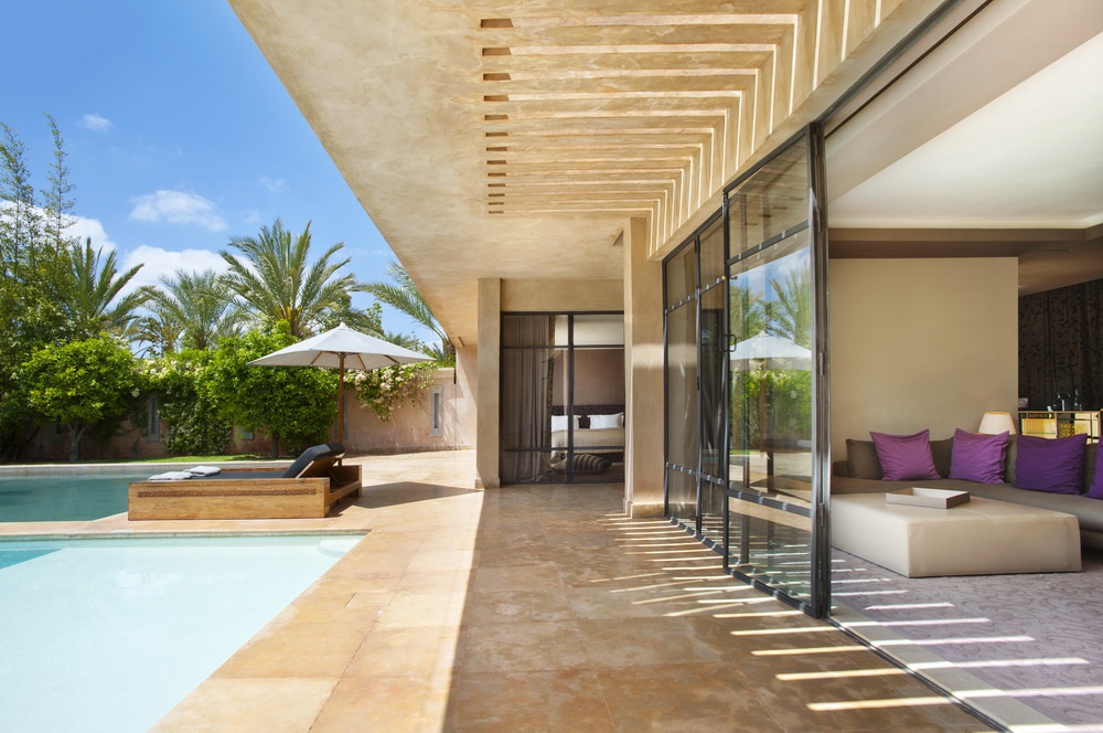 Pool Villa: 127 м2. Фешенебельная вилла в традиционном марокканском стиле, окруженная пышным садом с бугенвиллиями, включает спальню, просторную гостиную с камином, ванную комнату, террасу (20 м2) с открытой ванной, великолепный сад (500 м2) с пальмами, оливковыми и апельсиновыми деревьями, верандой, прудом и подогреваемым бассейном.