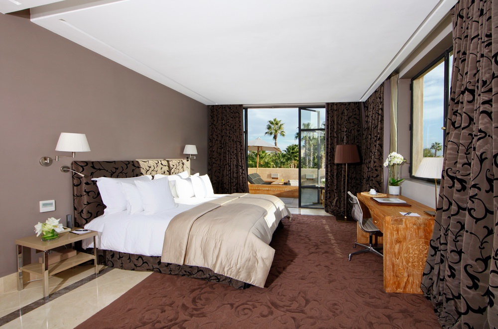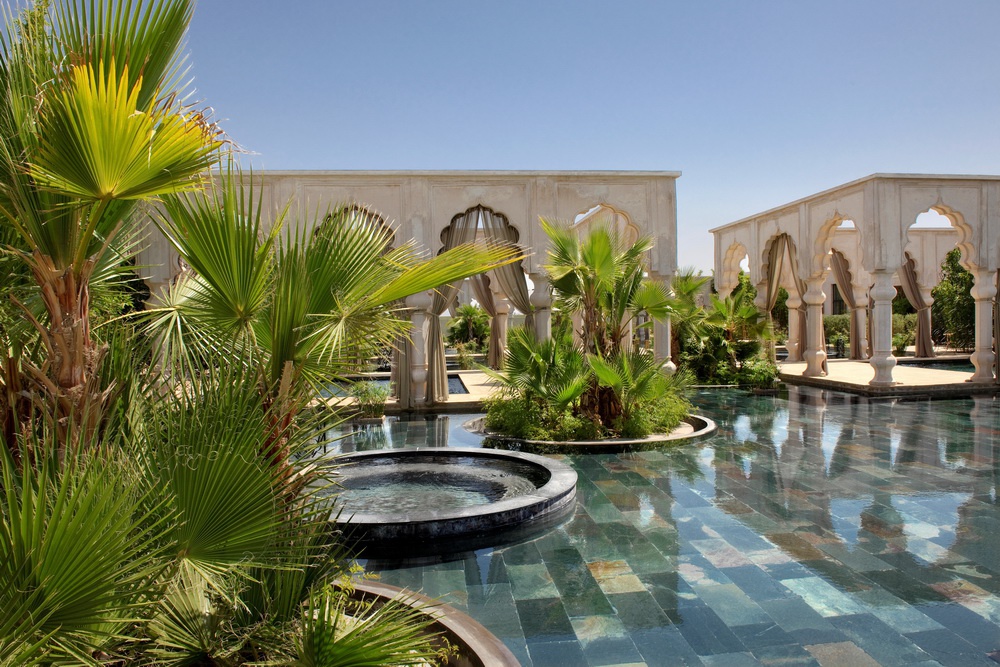 Среди 5 гектаров пышных садов с живописными прудами, благоухающими бугенвиллиями, оливковыми деревьями и тенистыми пальмами раскинулся Palais Namaskar Марокко. Фешенебельный отель напоминает иллюстрации к восточным сказкам: галереи с затейливыми арками, окруженные сверкающими водоемами, и роскошные виллы и дворцы, увенчанные золотым куполами, переносят гостей в таинственный мир древних марокканских традиций. При этом отель предлагает высочайший уровень современного сервиса. Шикарные номера, расположенные в виллах и дворцах, оснащены по последнему слову техники и располагают персональными садами с джакузи и бассейнами. Элегантный ресторан восхищает отменной кухней, а бары – выбором изысканных напитков. К услугам гостей также большой открытый бассейн, первоклассный СПА центр, прекрасно оборудованный фитнес-центр и другие услуги класса «люкс».