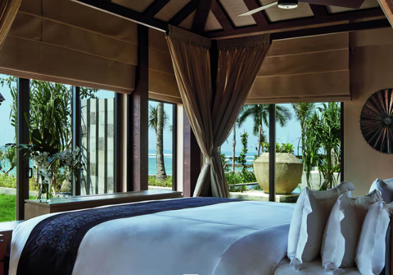 The Ritz-Carlton, Bali — оазис эксклюзивности с видом на океан. С эксклюзивным предложением люксов и вилл, роскошь пронизывает каждую деталь этого пляжного курорта в Нуса-Дуа. Благодаря просторной планировке, балийскому декору и открытым пространствам с видом на сад, люксы идеально подходят для группового и семейного отдыха. Виллы включают в себя частные бассейны, где гости могут насладиться плавающим завтраком.