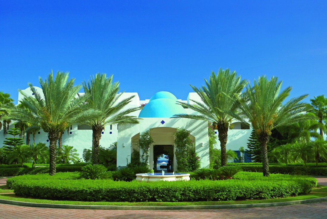 Особая роль в проектирование отеля была уделена ландшафтному дизайну. Разнообразие ботанического сада и драматургические приемы ландшафтного парка приятно радуют глаз и обеспечивают положительные визуальные эмоции. Сад постепенно переходит в пляж очень тонкого светлого песка.