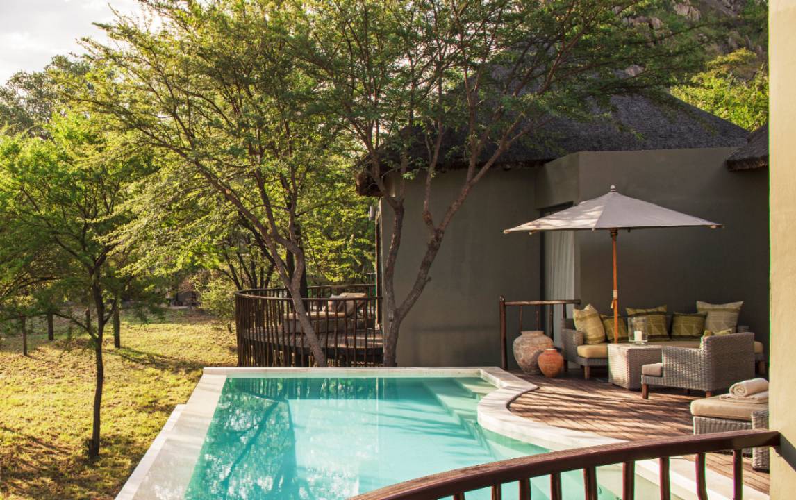 Savannah Room Water Hole View: 55 м2. Расположен на 1 этаже, состоит из спальни с кроватью king-size или двумя кроватями twin и зоной отдыха, ванной комнаты с ванной и душем, террасы с зоной отдыха и видом на водопой диких животных. Размещение – 2 взрослых или 2 взрослых + 1 ребенок.