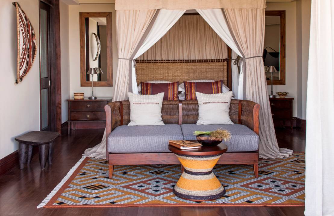 Savannah Room: 55 м2. Расположен на 1 этаже, состоит из спальни с кроватью king-size или двумя кроватями twin и зоной отдыха, ванной комнаты с ванной и душем, террасы с зоной отдыха и видом на Серенгети. Размещение – 2 взрослых или 2 взрослых + 1 ребенок.
