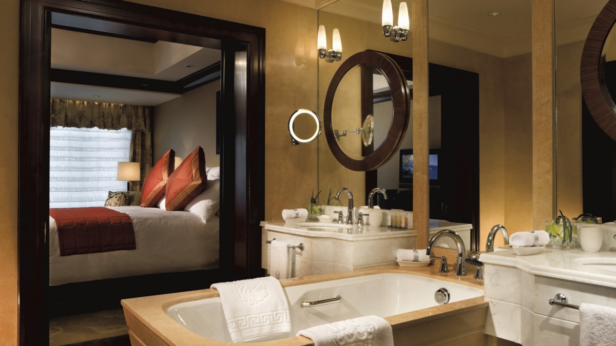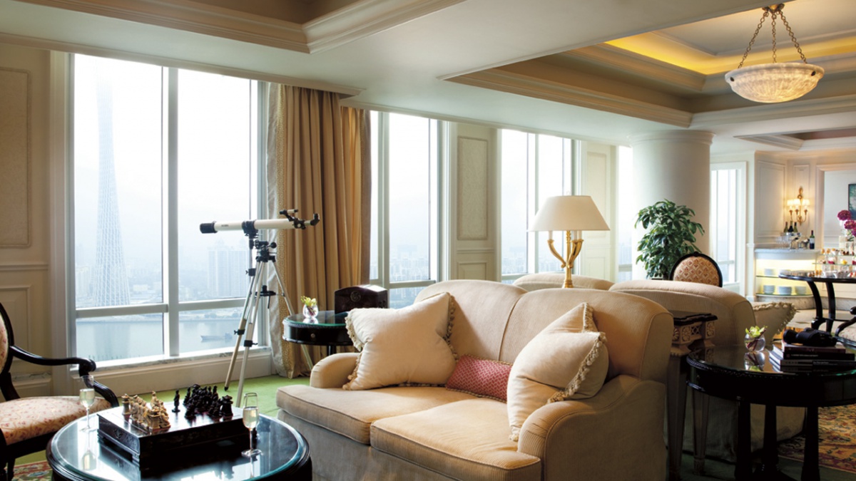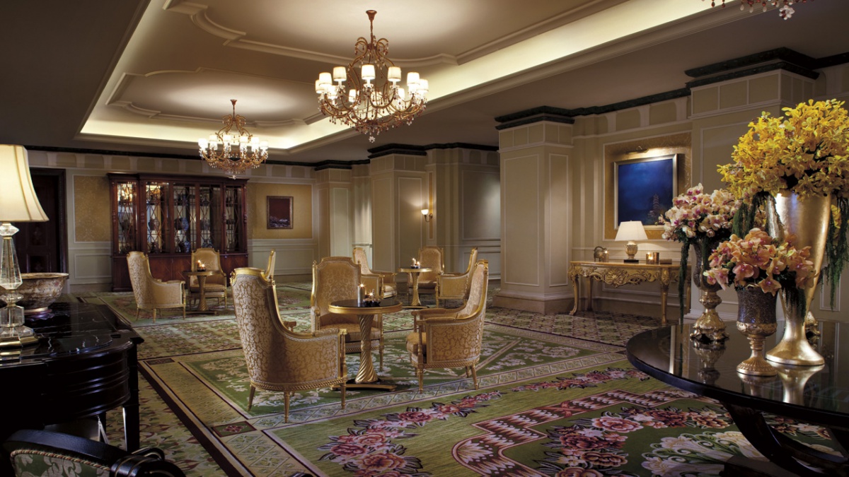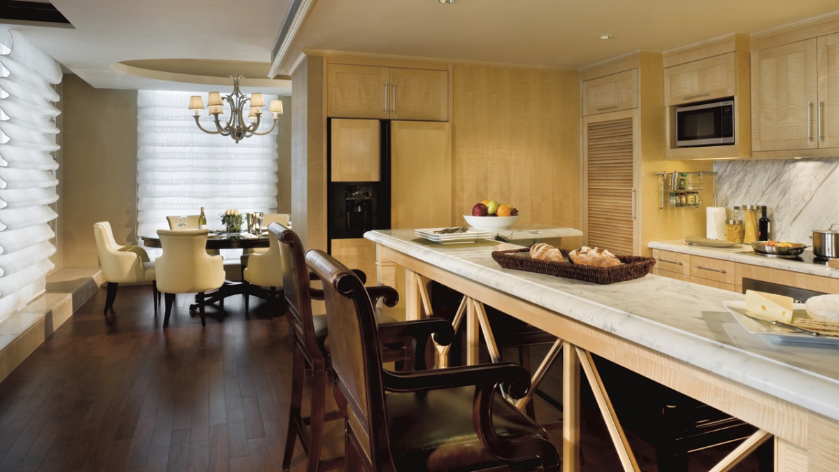 The Ritz-Carlton suite (420 кв. м): 2 террасы (каждая – 40 кв. м, одна – с джакузи на открытом воздухе), прихожая, гостиная с обеденной зоной (стол на 6 персон), спальня, гардеробная, тренажерная комната, ванная комната с ванной и душевой кабиной, гостевой туалет. Расположен на 38 этаже. Вид на город и реку.