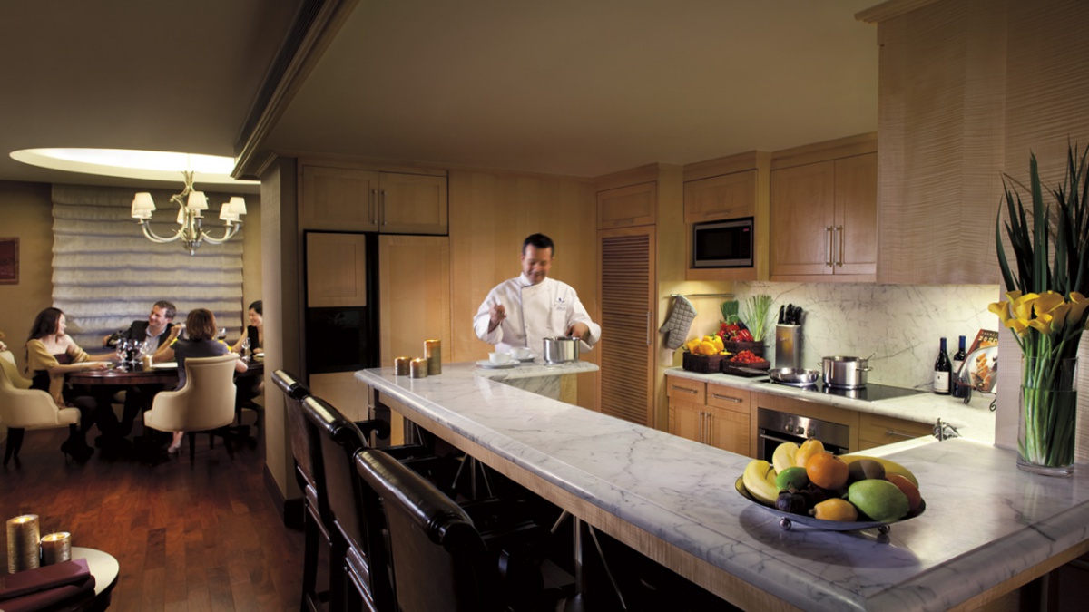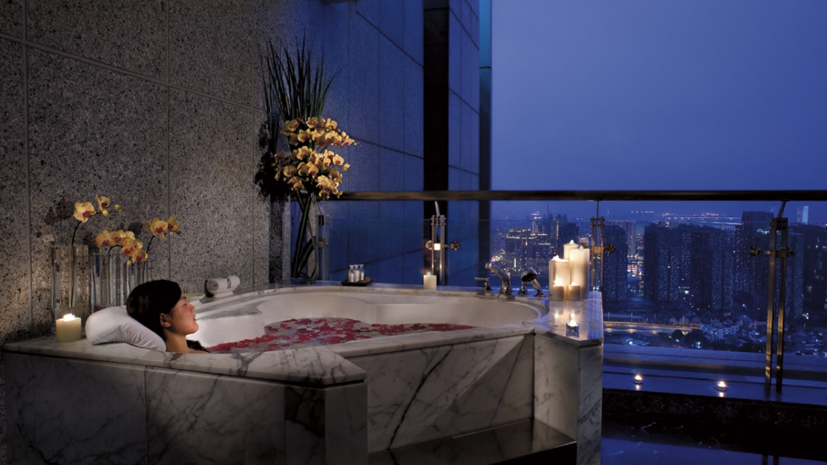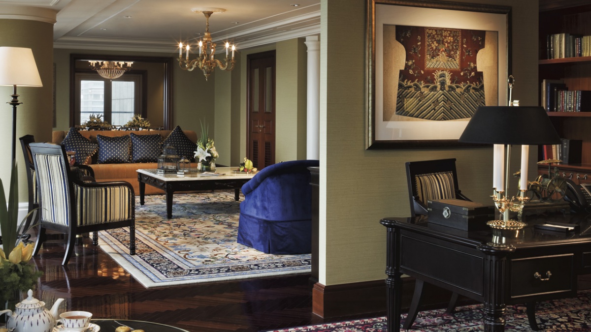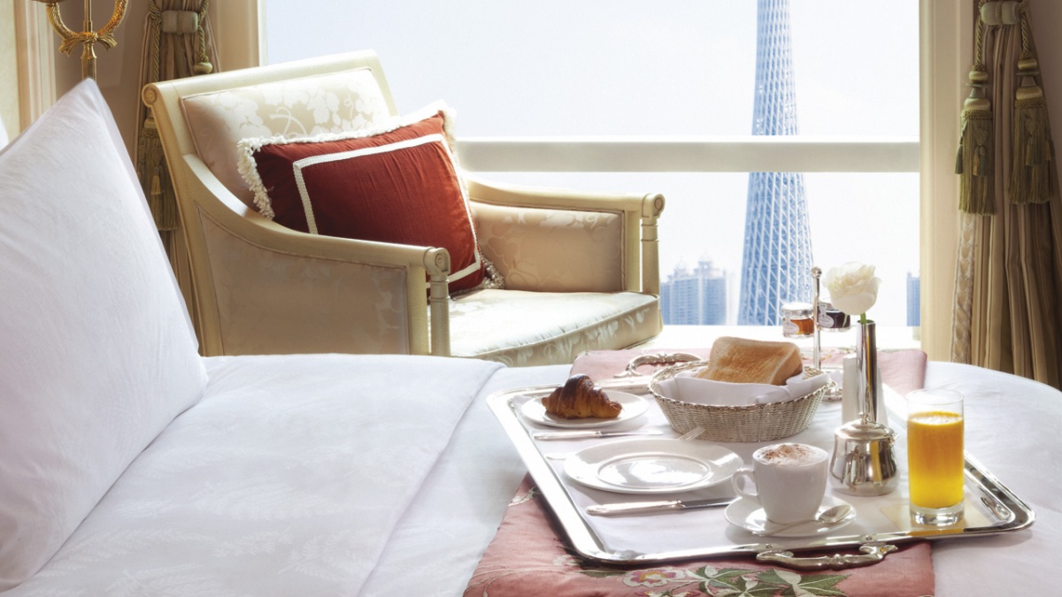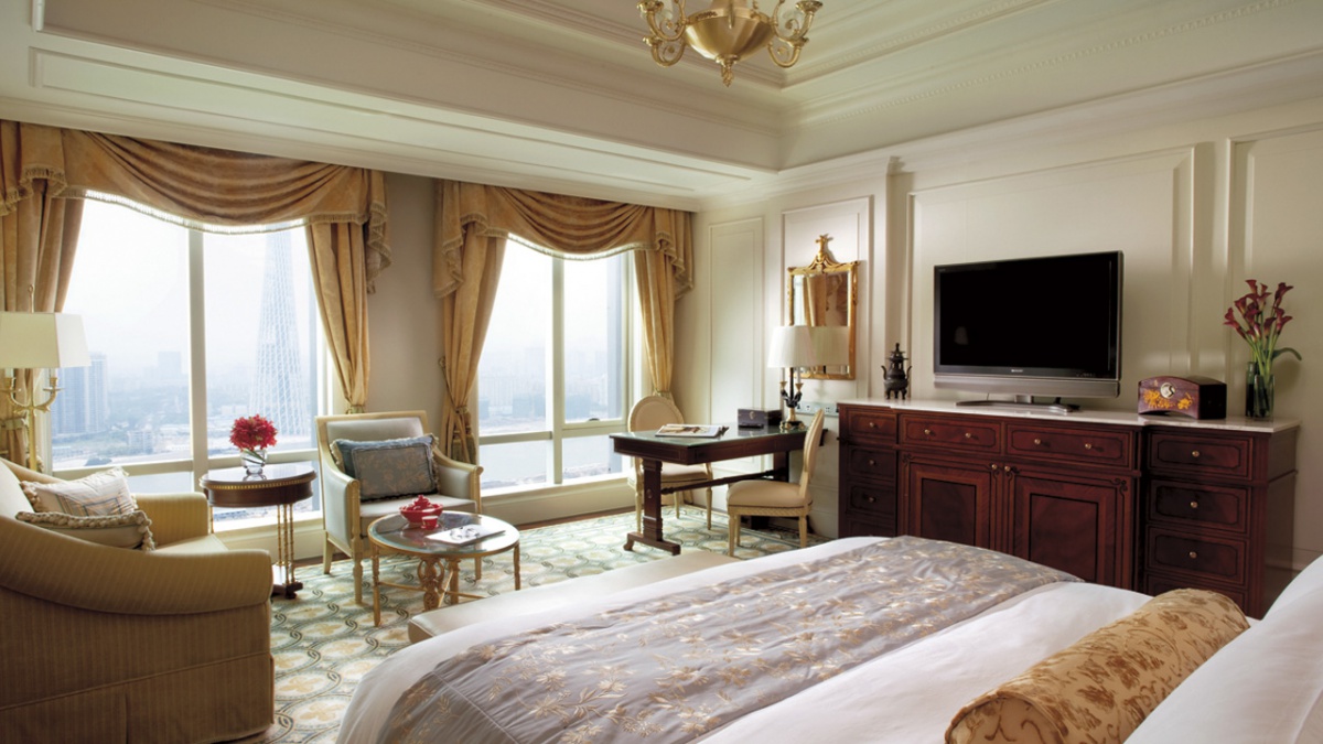 The Ritz-Carlton suite (420 кв. м): 2 террасы (каждая – 40 кв. м, одна – с джакузи на открытом воздухе), прихожая, гостиная с обеденной зоной (стол на 6 персон), спальня, гардеробная, тренажерная комната, ванная комната с ванной и душевой кабиной, гостевой туалет. Расположен на 38 этаже. Вид на город и реку.