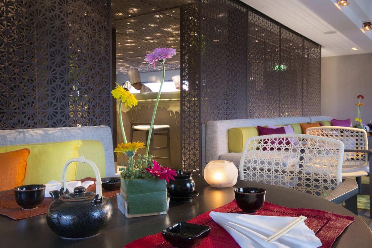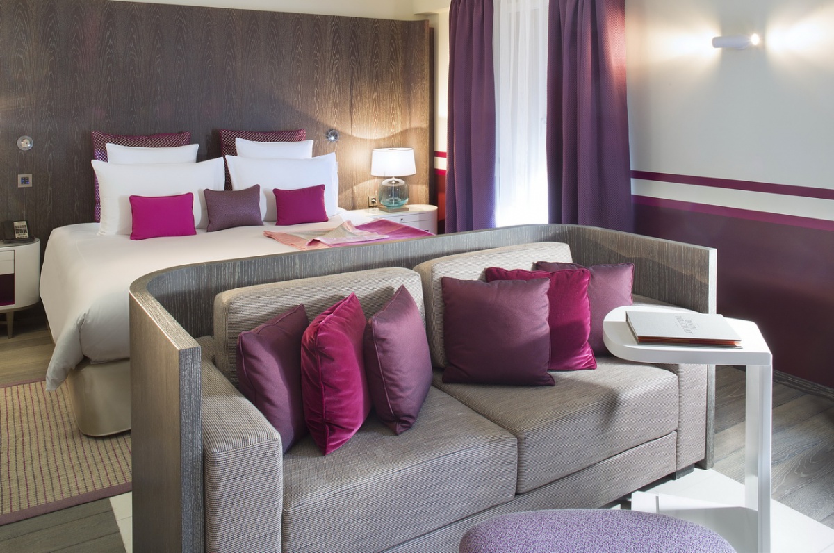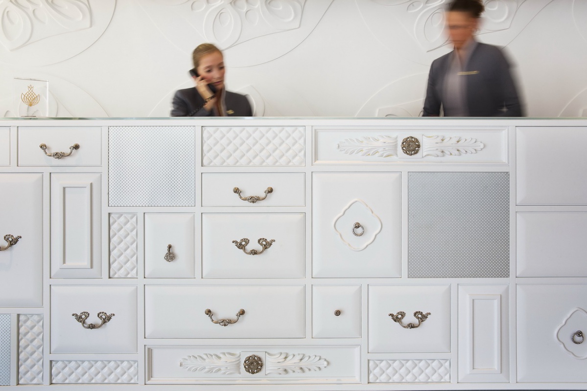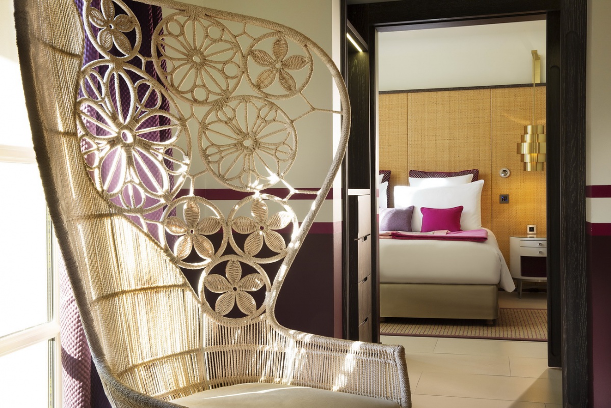 Цветовая гамма, представленная в дизайне номеров, завораживает. Чёткие геометрические линии оранжевых, лиловых, голубых и коричневых оттенков, создают особый контраст с современной белой лакированной мебелью, белоснежными деревянными, каменными или паркетными полами. В номерах Suite гармонично сочетаются детали из дерева и камня, и конечно, особый шарм номерам придает дизайнерская мебель с льняной и шелковой отделкой.