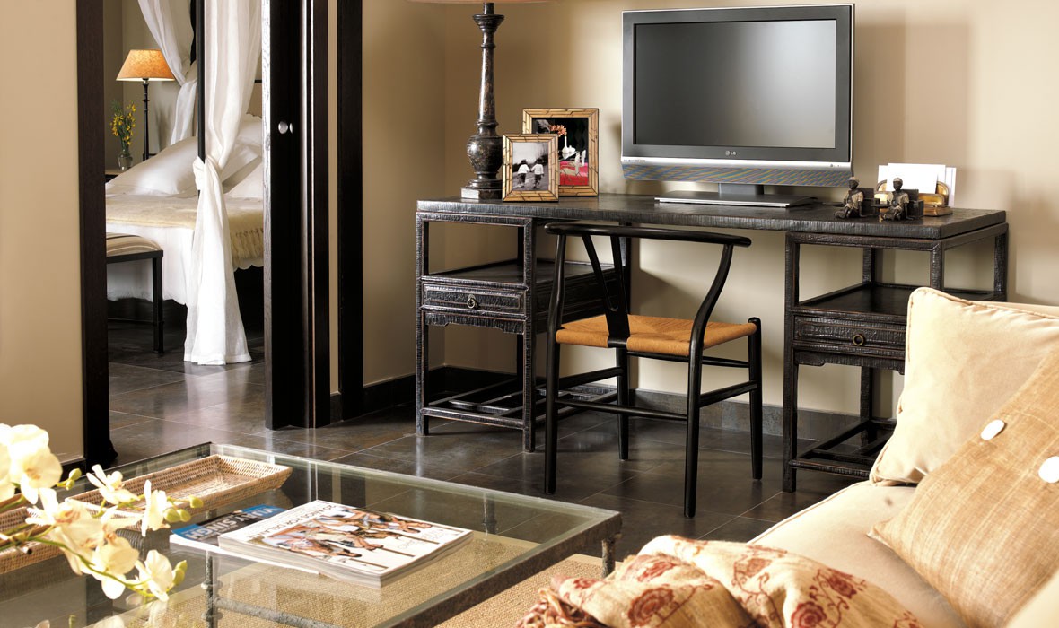 Роскошный улучшенный номер выполнен в непринужденном балийском стиле с использованием больших панорамных окон. Гости могут отдохнуть в уютной спальне, просторной гостиной или на большой меблированной террасе, откуда открывается захватывающий вид на прекрасную зелень садов и изысканные бассейны или на шикарный сосновый лес, который окружает отель. Возможно смежное размещение с номерами категории Deluxe Room. Максимальное проживание – 2 взрослых и 2 детей возрастом до 11 лет (включительно).