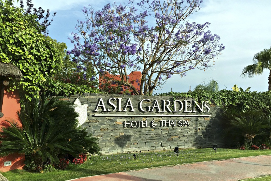 Курорт Asia Gardens Hotel & Thai SPA расположен на побережье Средиземного моря в восточной части Испании. Расстояние от городка Аликанте 45 км, а от Валенсии – 130 км. Дорога от аэропорта Аликанте до отеля занимает 40 минут, а из железнодорожного вокзала всего 25 минут. Из аэропорта Валенсии можно добраться за 1 час 20 минут.