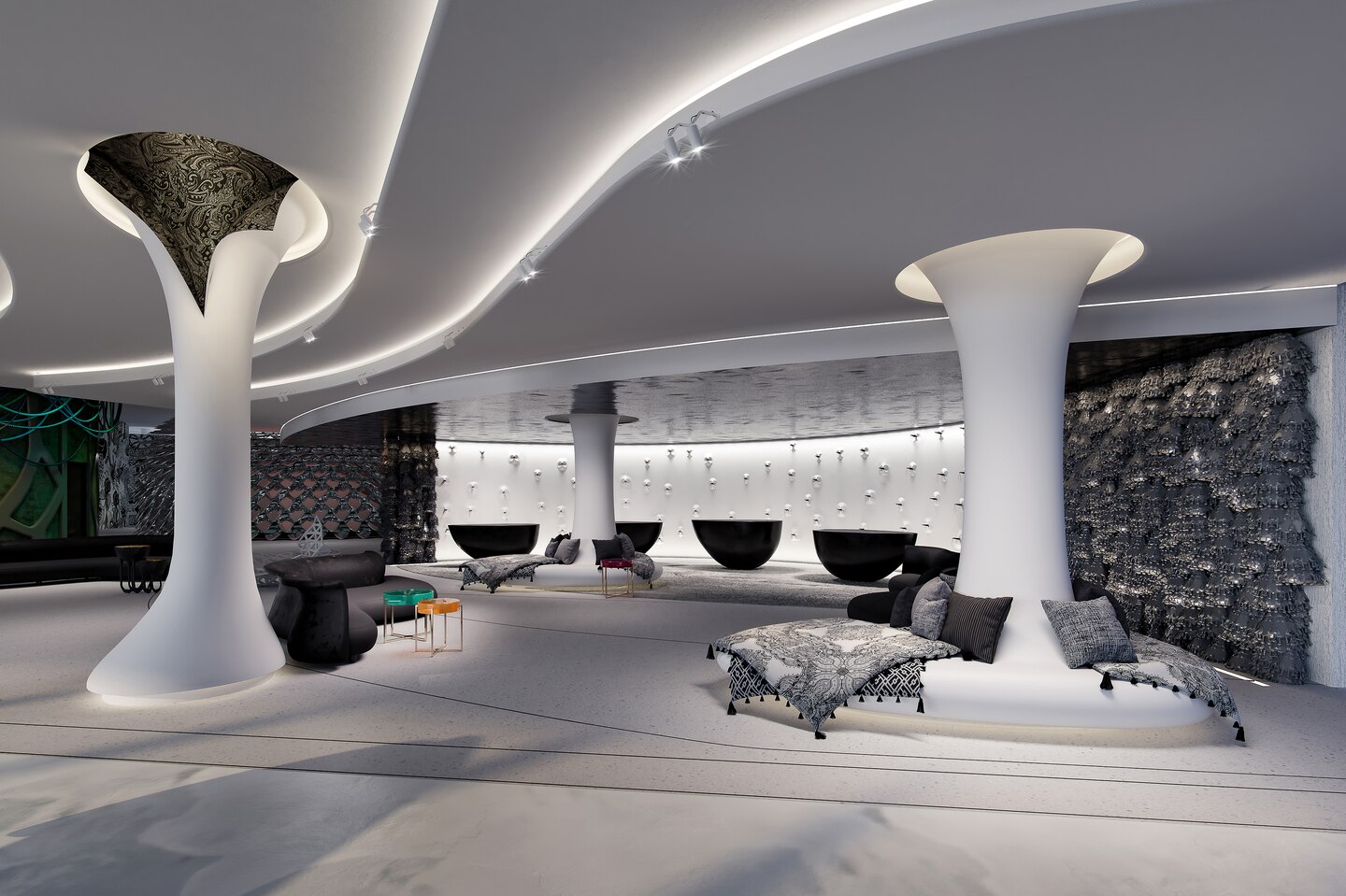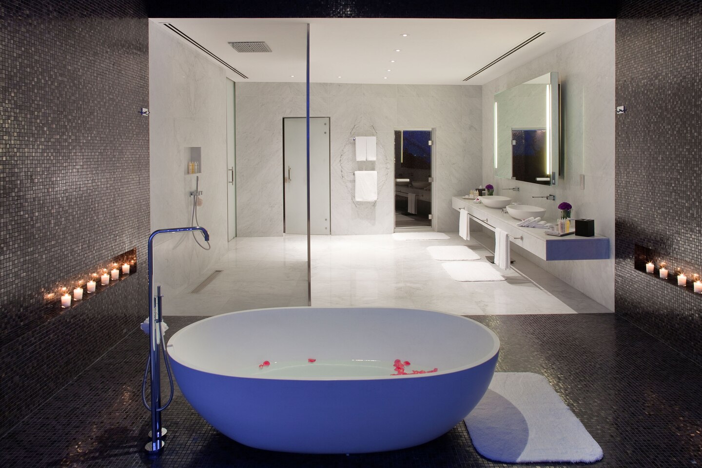 409 кв. м. Шикарный двухуровневый люкс состоит из спальни с кроватью «king sizе» и зоны отдыха, отдельной гостиной с большим окном в пол, которая оборудована диваном, креслами и кофейными столиками, столовой с обеденной зоной на 12 персон, огромной ванной комнаты с отдельной овальной ванной, душевой кабиной и двойной раковиной, сауны, собственного бассейна, гардеробной, холла, балкона с 180-градусными обзором пристани для яхт, террасы, палубы. Доступно бронирование детской кроватки и дополнительной кровати. Размещение: 3 человека.