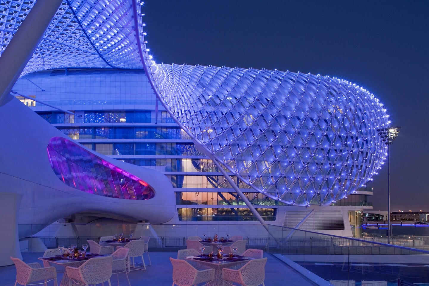 Отель находится в непосредственной близости от ипподрома и гоночной трассы, принимающей Гран-При Formula-1 и является идеальным местом для проживания азартных болельщиков, любителей элитных ресторанов и ночных развлечений. Свои двери навстречу посетителям радушно открывают 7 отельных ресторанов и баров с великолепной кухней и музыкой от DJ. В отеле есть фитнес-центр, зоны для занятий йогой и шикарный СПА-центр, детская площадка и два бассейна. Рядом расположены поле для гольфа Yas Links, теннисный корт и другие спортивные объекты.