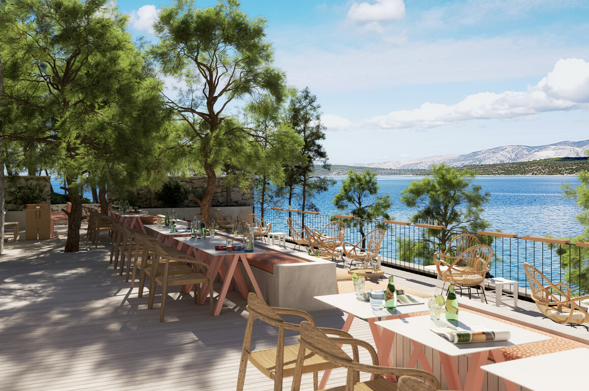 - A Bay – бар на пляже, где можно баловать себя вкусными блюдами и наслаждаться купанием от рассвета до заката. Утром гостей встречают пекарня и кафе-бар, которые превращаются в тратторию/конобу на время обеда и ужина, поэтому вы можете начать свой день с «настоящего» круассана и кофе с фирменными лакомствами. В течение дня вы можете подкрепиться тапасами, сэндвичами, пиццей, салатами и свежевыловленной рыбой, приготовленной на гриле. В этом наполненном безмятежностью приморском уголке с расслабляющей музыкой вы сможете понаблюдать за закатом, наслаждаясь коктейлем со льдом или охлажденным шампанским.
