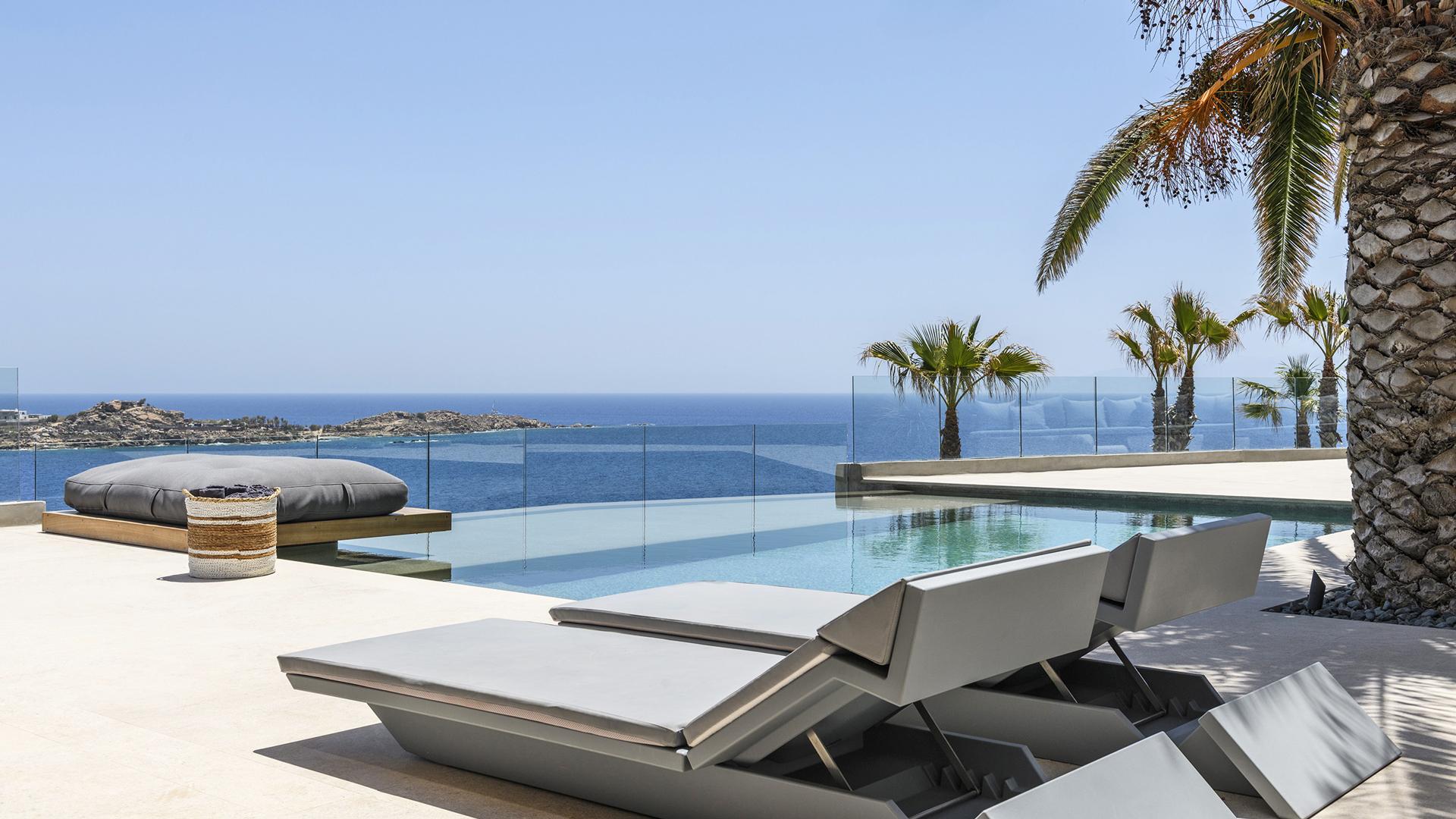 Pelagos South — роскошная вилла, расположенная в престижном районе Agios Lazaros, на южной стороне Миконоса. Вилла стоит на краю бутикового комплекса из двух систершопов, с потрясающим обзором на Эгейское море, сочетая приватность с близостью к пляжам и развлечениям. Интерьер — современный минимализм с акцентом на простор, свет, море; вилла проектирована так, чтобы создать ощущение гармонии, где интерьер и экстерьер почти сливаются, а виды стали частью атмосферы.