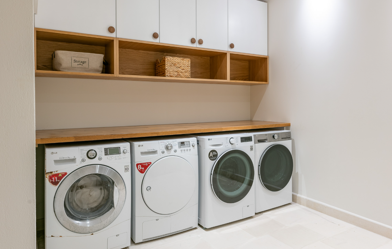 На цокольном / нижнем уровне: один из en suite спален, зона развлечений (кино-комната), фитнес-зал, вспомогательные помещения.