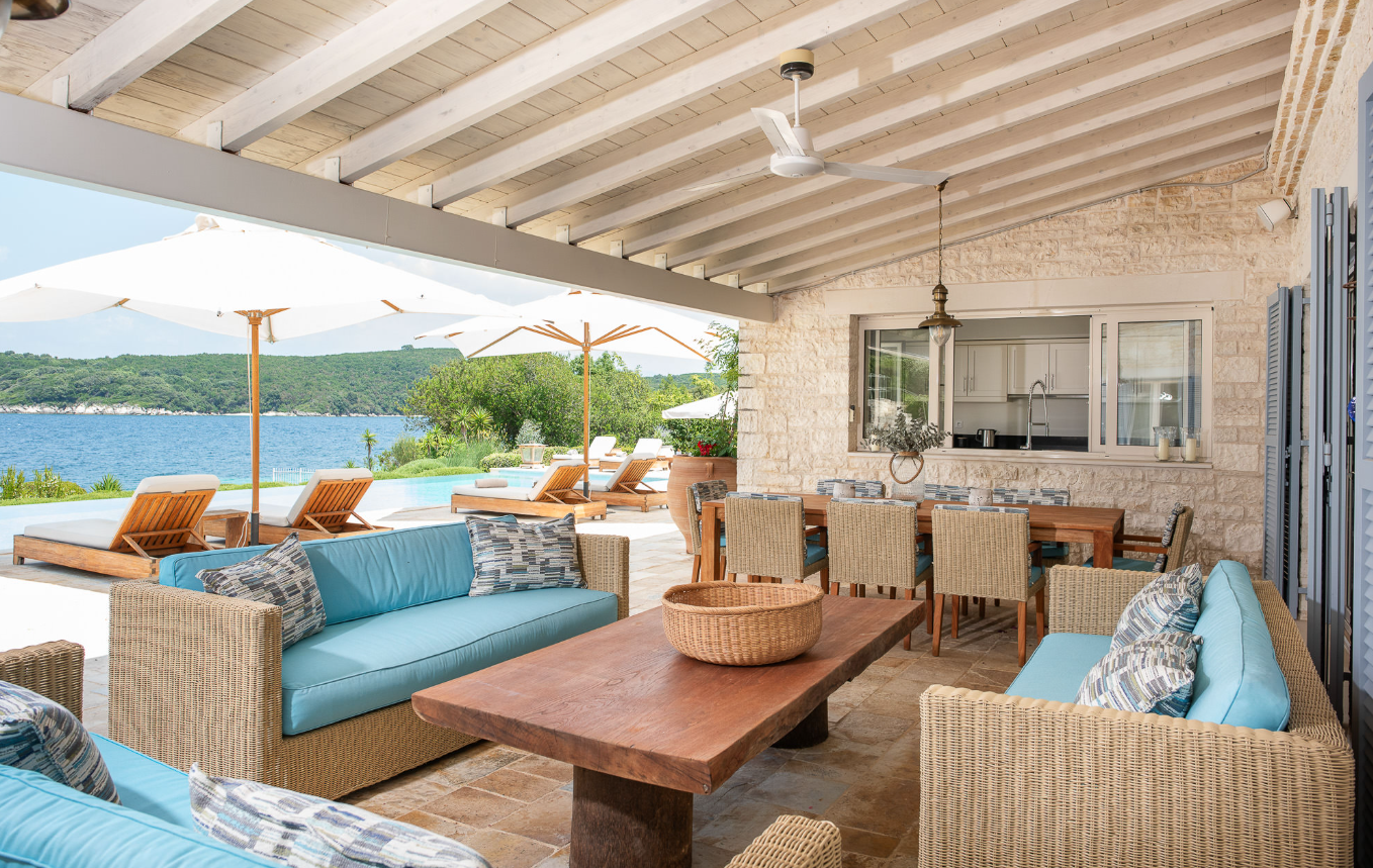Вилла находится на берегу, с собственным причалом и прямым доступом к морю. Близко к пляжу Avlaki, недалеко от таверн у берега. Вилла примерно в 50 минутах езды от аэропорта Корфу. До деревень Kassiopi и St. Stephano — несколько минут на автомобиле.