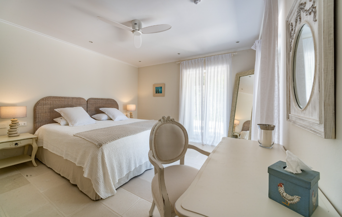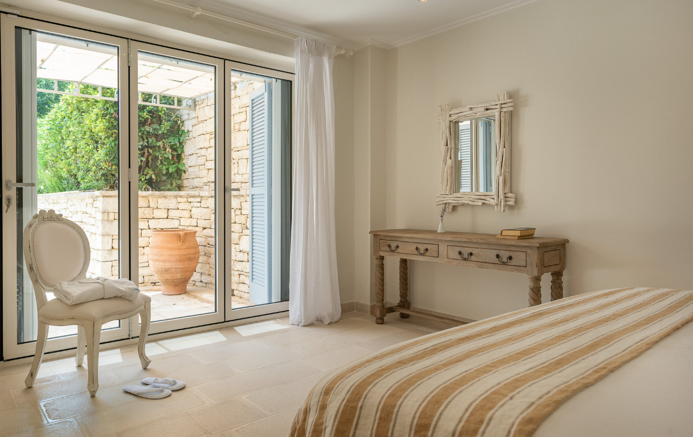 Все спальни имеют кондиционер, собственные ванны или душевые, приватные террасы или Juliet балконы, виды либо на море, либо на сад и бассейн.