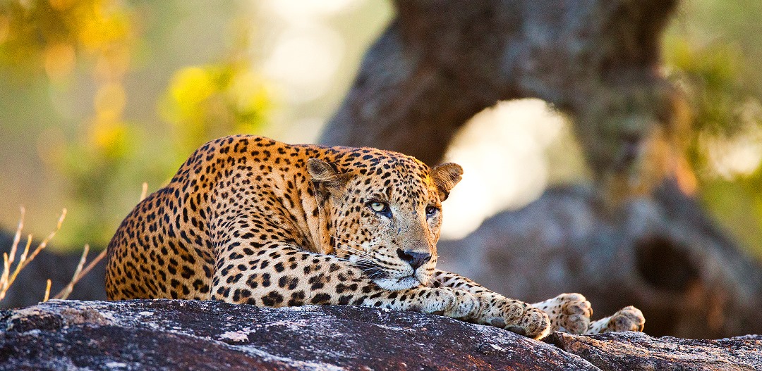 Вот на дереве притаился король леса – цейлонский леопард. На острове он занимает верхнее звено в пищевой цепи и заставляет держаться настороже грациозных аксисов, любопытных гульманов и других обитателей тропического леса.