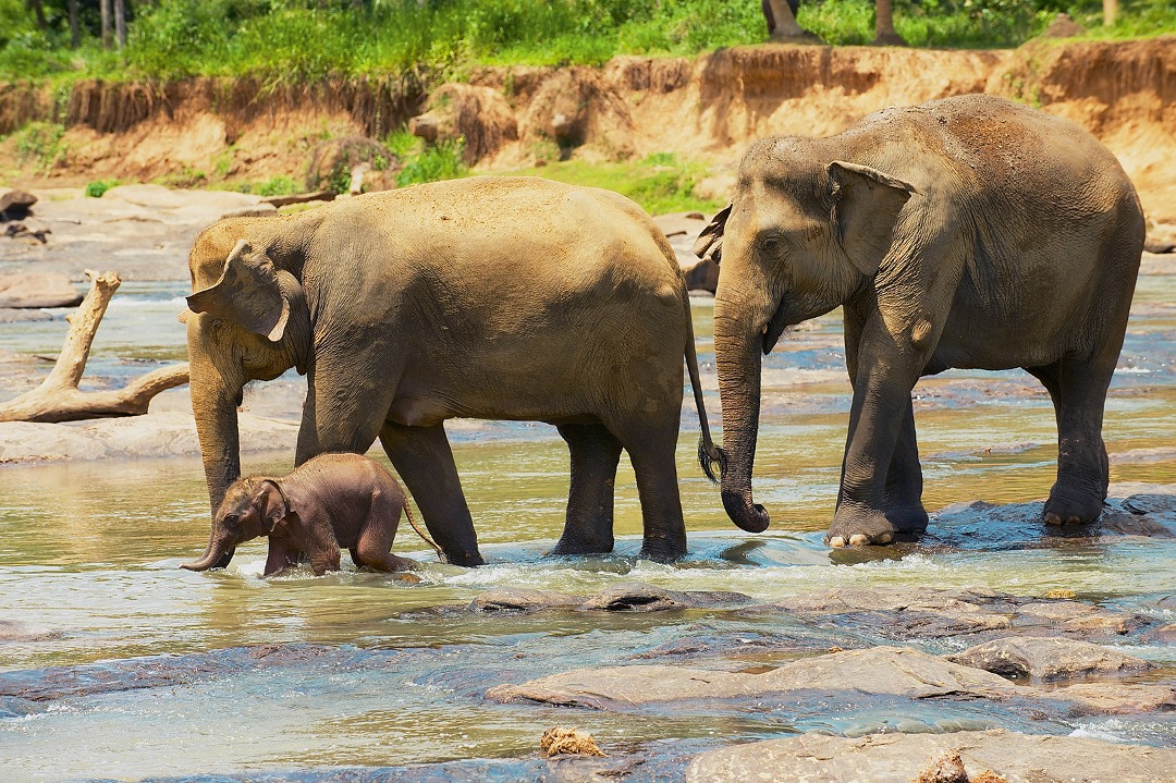 Каких только животных и птиц не встретишь в этих краях. Вот из воды появляются полумесяцы-рога азиатских буйволов. Вот семейство слонов учит своих малышей плавать. Здешняя популяция этих исполинов насчитывает пять тысяч особей.