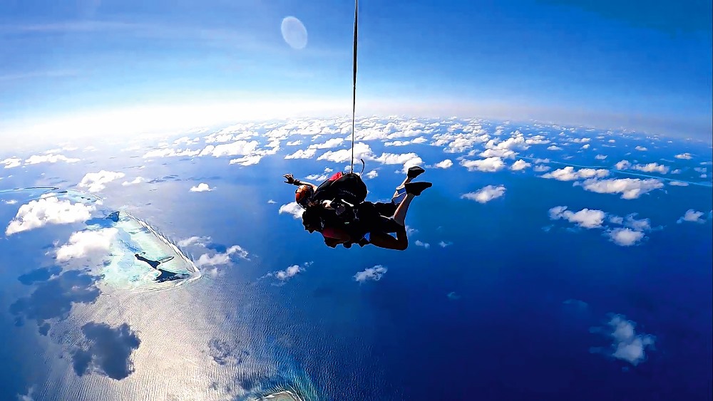 Гостей курорта ждут 60 секунд свободного падения на скорости 200 км/ч и пять минут планирования на парашюте над Индийским океаном к белоснежным пляжам. Дополнительно можно воспользоваться услугой съемки на экшн-камеру или заказать профессиональное видео у оператора-скайдайвера.