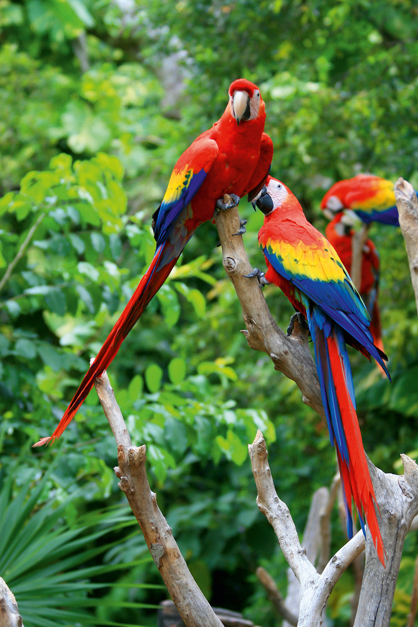 Красочен и мир пернатых: попугаи ара, туканы, бирюзовые котинги, манакины, трогоны, райские танагры. Из хищников самая крупная – южноамериканская гарпия. Размах ее крыльев может достигать 2 метров. Эта птица представляет опасность для многих млекопитающих: от ленивцев и обезьян до мазам.