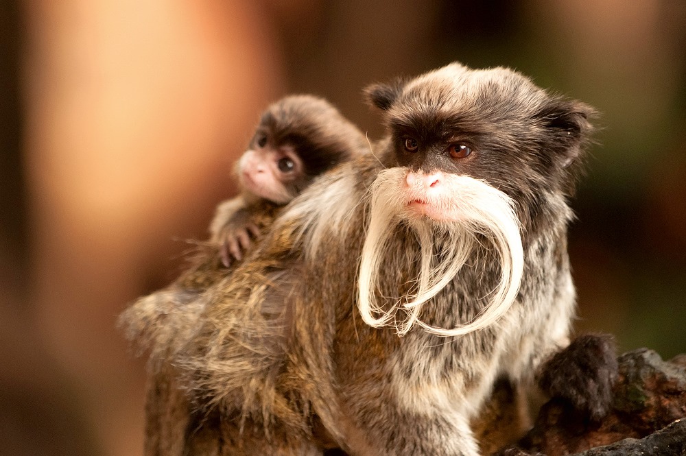 Очаровательны бородатые императорские тамарины. Белые усы и бороду имеют все представители этого вида, включая самок и юных особей.