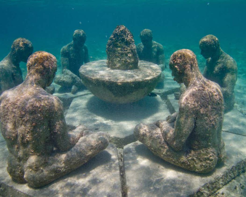 Первым парком подводных скульптур в коллекции Тейлора и, стало быть, на планете стал гренадский парк залива Молинер. National Geographic включил его в список 25 чудес света. 75 фигур расположены на глубине 5–8 метров и занимают территорию 800 кв. м. Чтобы увидеть их, необязательно погружаться. Они прекрасно просматриваются через прозрачное дно лодки.