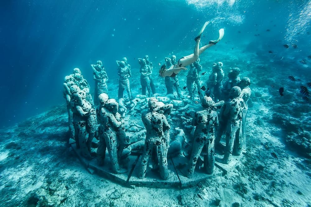 В Индонезии, между Бали и Ломбоком, где в кристально чистой воде обитают черепахи, расположился еще один проект – “Гнездо” (Nest). 48 фигур людей образуют круг и, по задумке автора, напоминают о том, что за последние десятки лет Земля лишилась сорока процентов коралловых рифов. Место пользуется популярностью снорклеров.