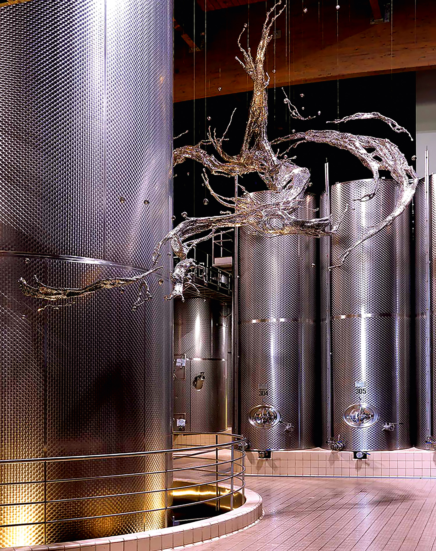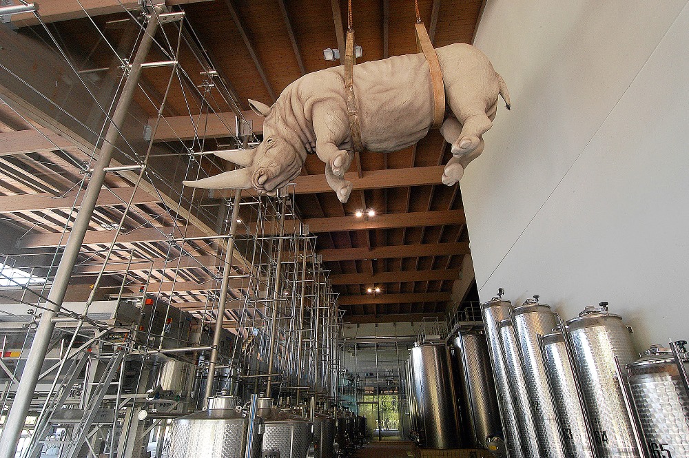 Хозяйство Ca' del Bosco выглядит нарядно, ухоженно и современно. По территории приятно погулять, посмотреть скульптуры выдающихся мастеров в помещении и под открытым небом. Мне запомнились бронзовые ворота в форме солнца от Арнальдо Помодоро и инсталляция, имитирующая разлитую в воздухе воду, работы Чжена Лу.