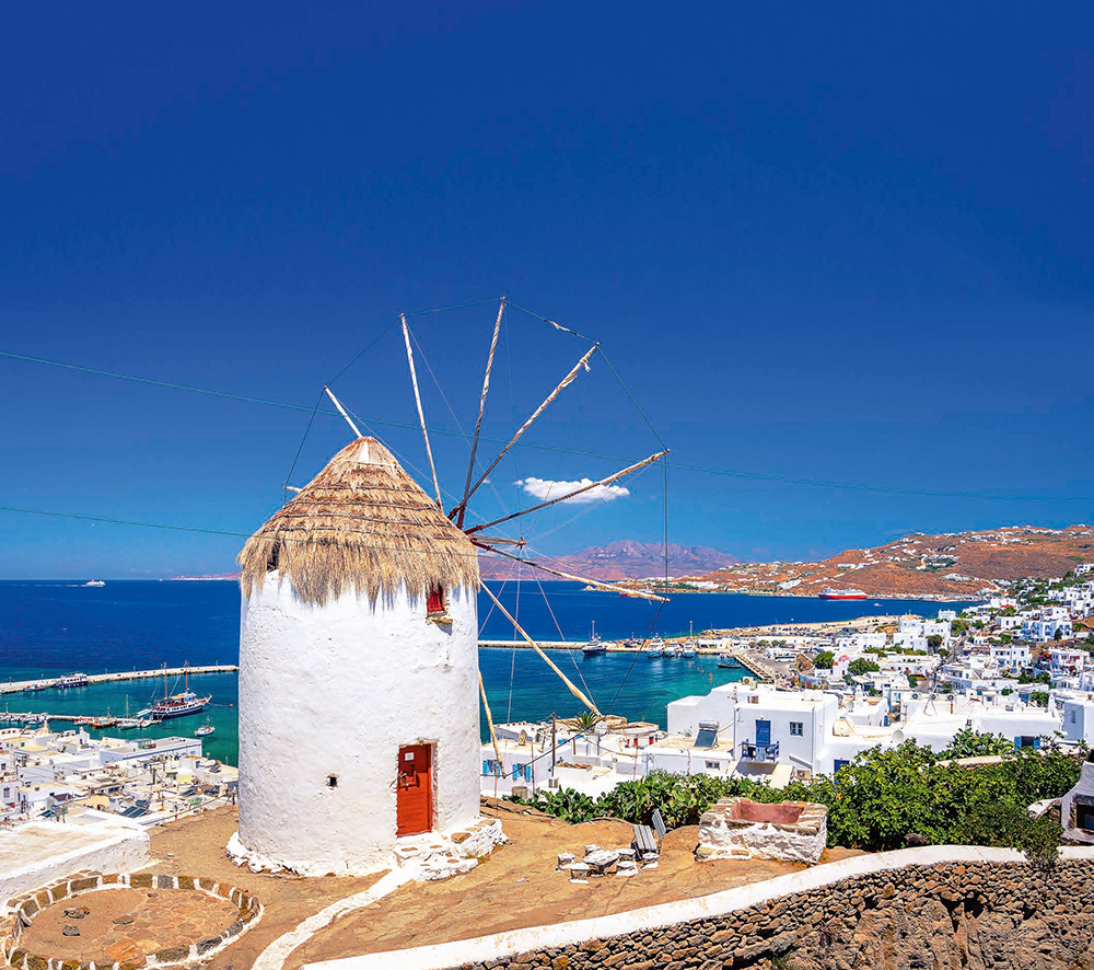 Ветряные мельницы активно использовали на Миконосе с 16 века вплоть до появления электричества в начале двадцатого, но до сих пор они определяют силуэт острова. Их парусиновые паруса приводил в действие северный ветер Мельтеми. До наших дней из 25 ветряных мельниц дошло 16. Некоторые после реновации переоборудованы в комфортабельные отели-апартаменты. Остальные открыты как музеи или фотолокации. Наиболее востребованы ветряные мельницы в главном городе – Хори, что на западном побережье. В вечернее время романтики и просто туристы любуются здесь закатом над морем и "Маленькой Венецией".