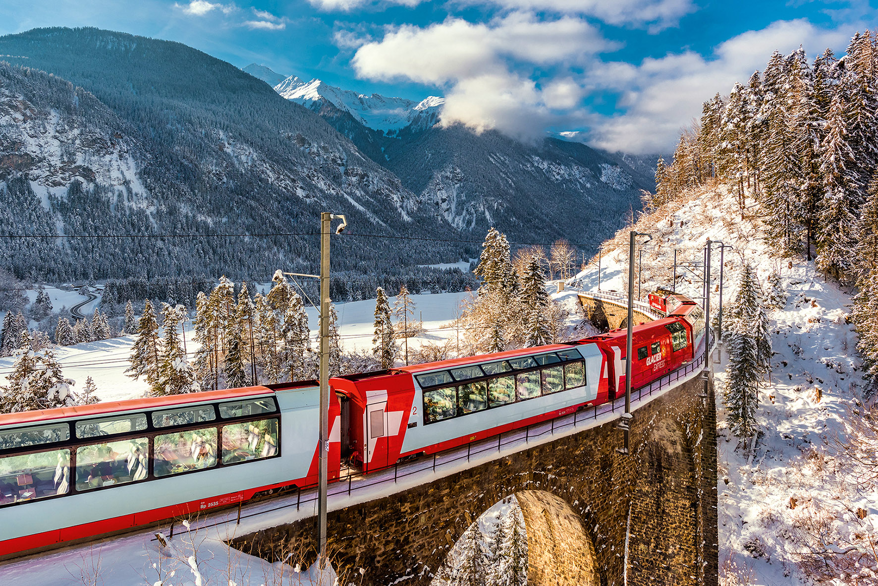 Полюбоваться панорамами Швейцарии можно из окна комфортабельного Glacier Express, маршрут которого проходит через Санкт-Мориц, Церматт, виадуки железной дороги Альбула, Рейнское ущелье (“Большой каньон Швейцарии”) и горный перевал Оберальп.