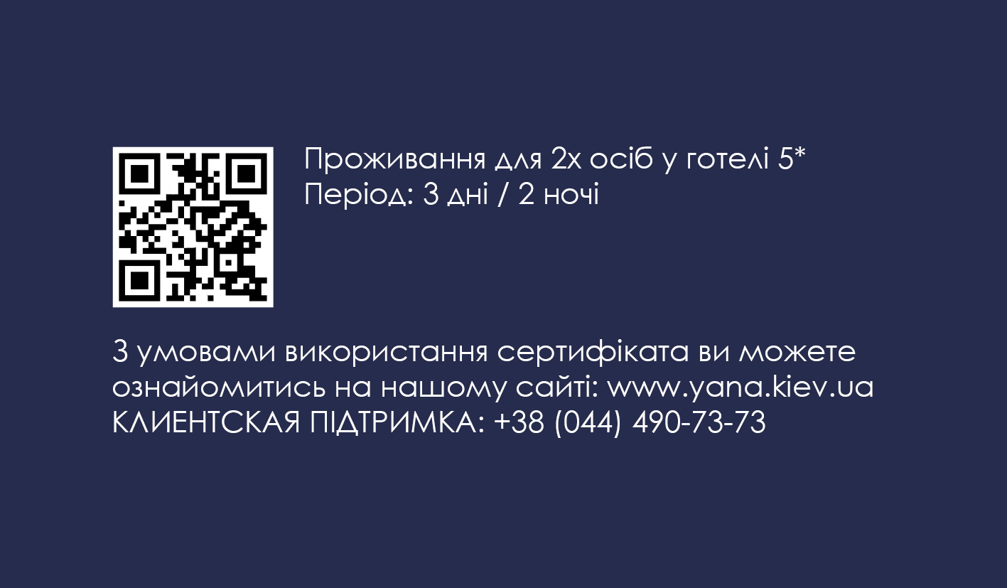 Перевага цього сертифіката в тому, що він завжди є в наявності. Тому Ви можете придбати його в будь-який момент і відразу ж подарувати.